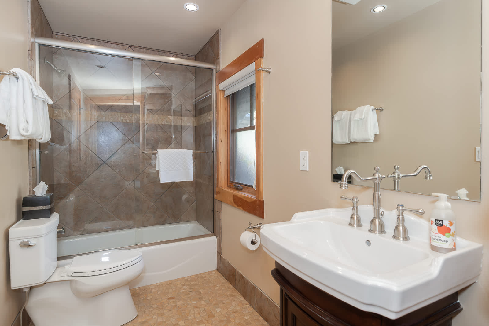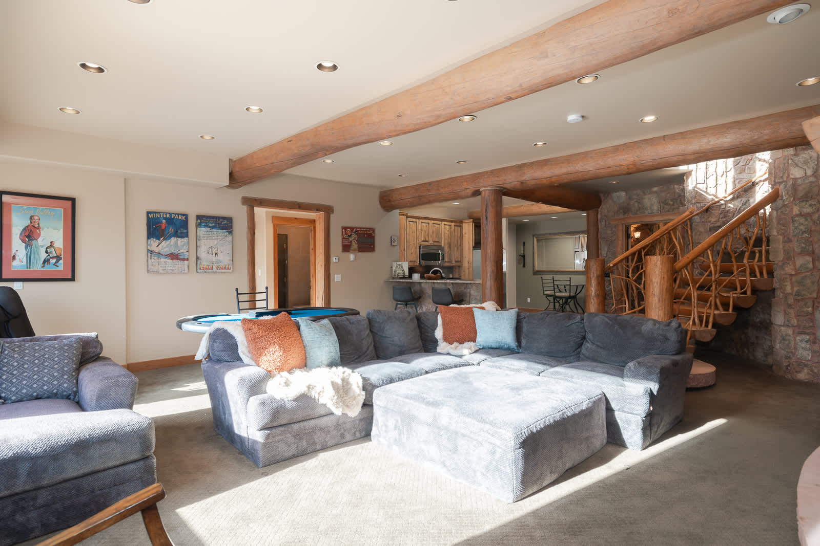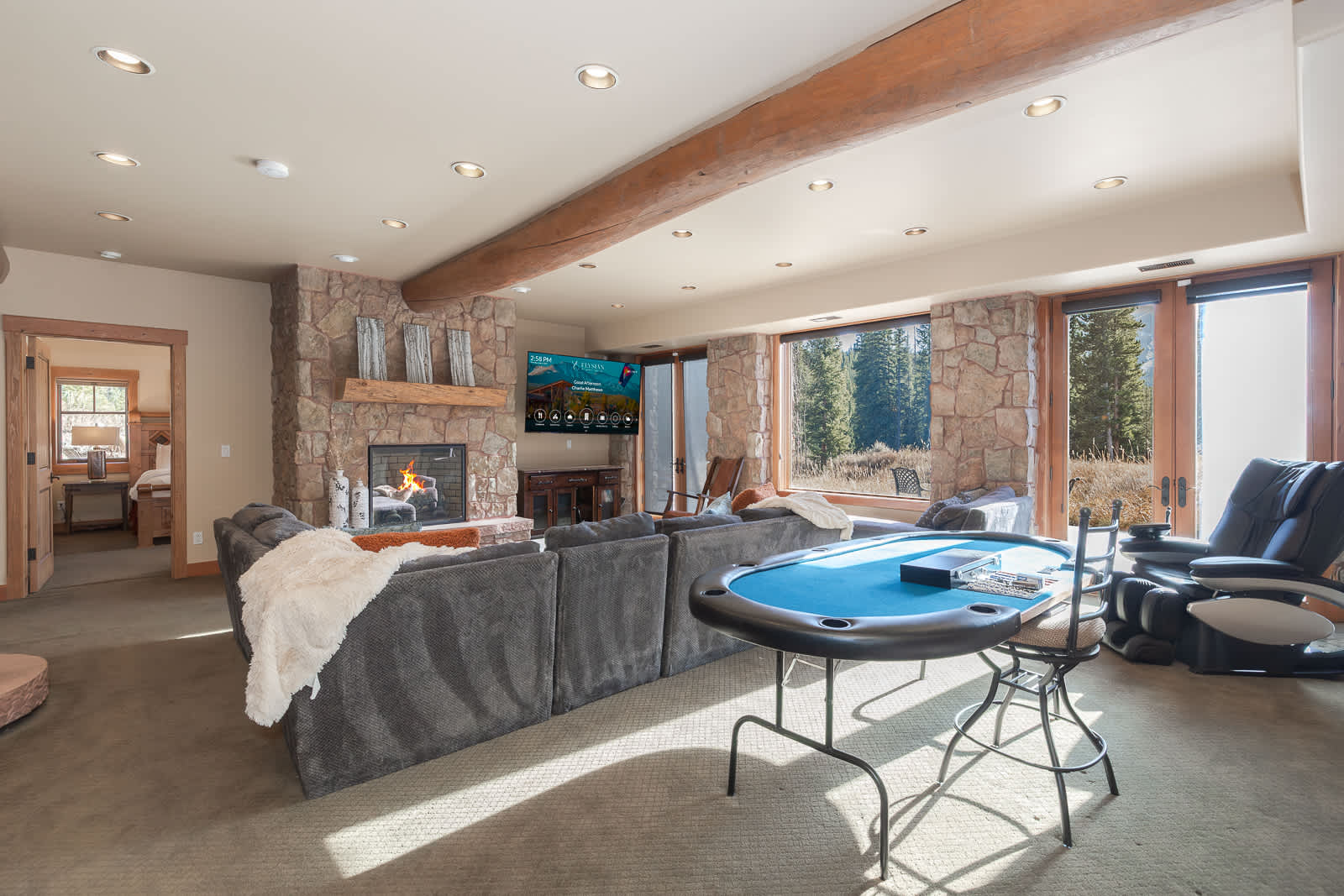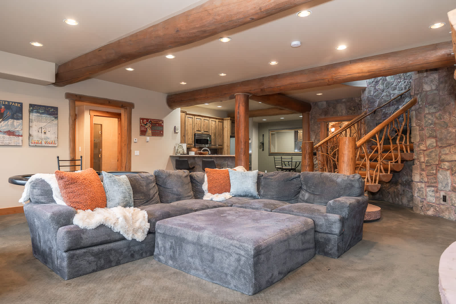 Your stay at Cedarcrest Lodge is defined by exceptional amenities: a wine tasting cellar, sauna, three full kitchens, Pop-a-Shot, poker table, treadmill and three distinct living rooms ensure everyone has a space to gather or unwind. A unique attached apartment with its own kitchen and living room provides the perfect private retreat for a small family or couple within your group.