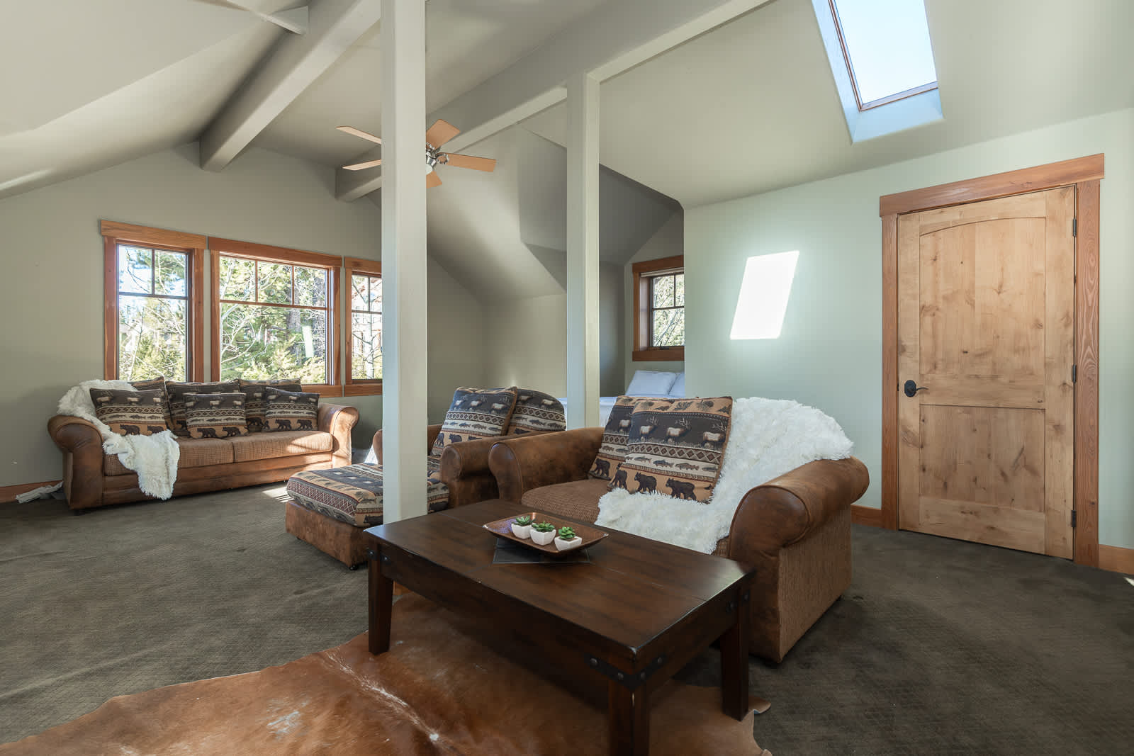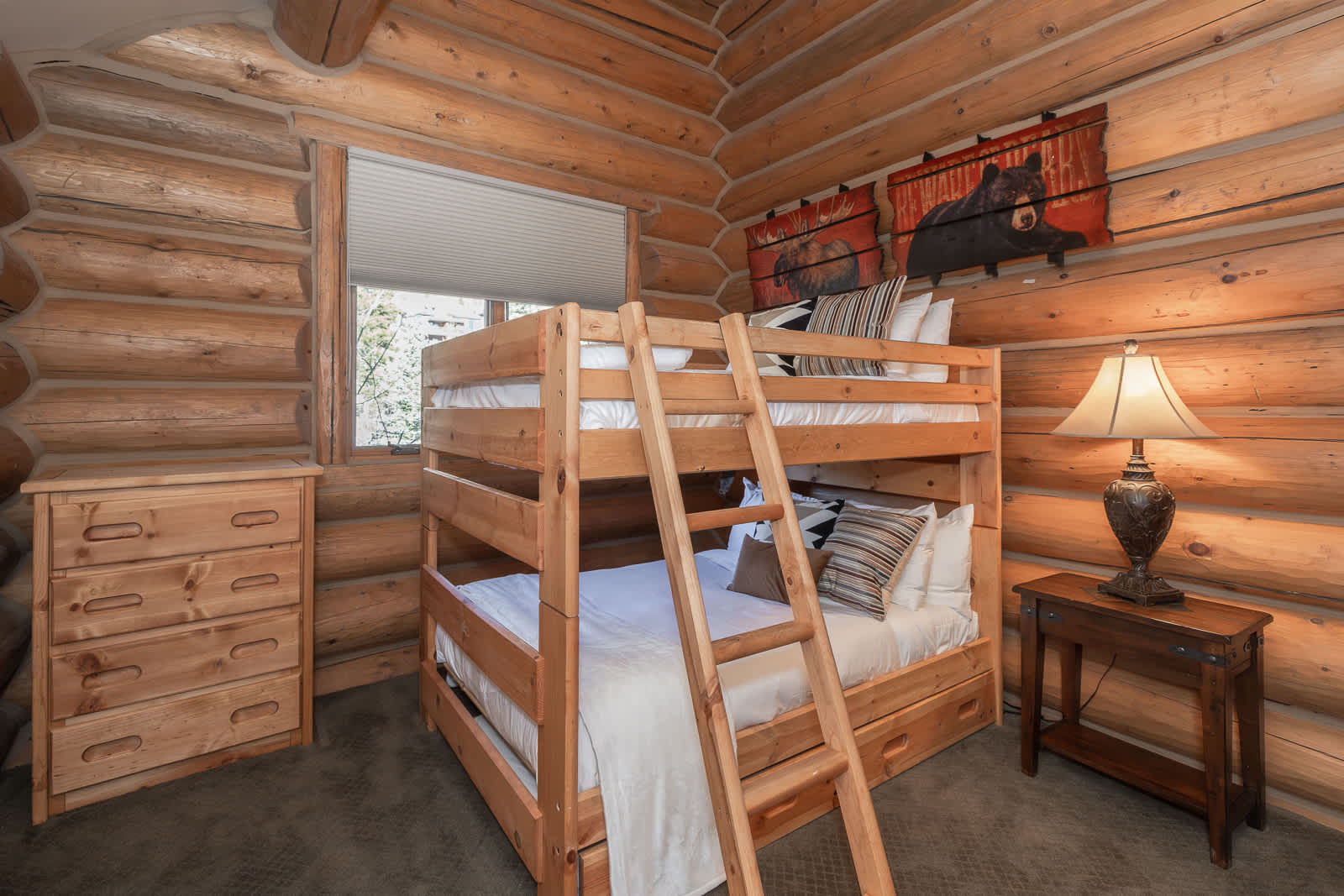 • Bunk Room (Upper Floor): Twin-over-twin bunk beds, private ensuite bath.