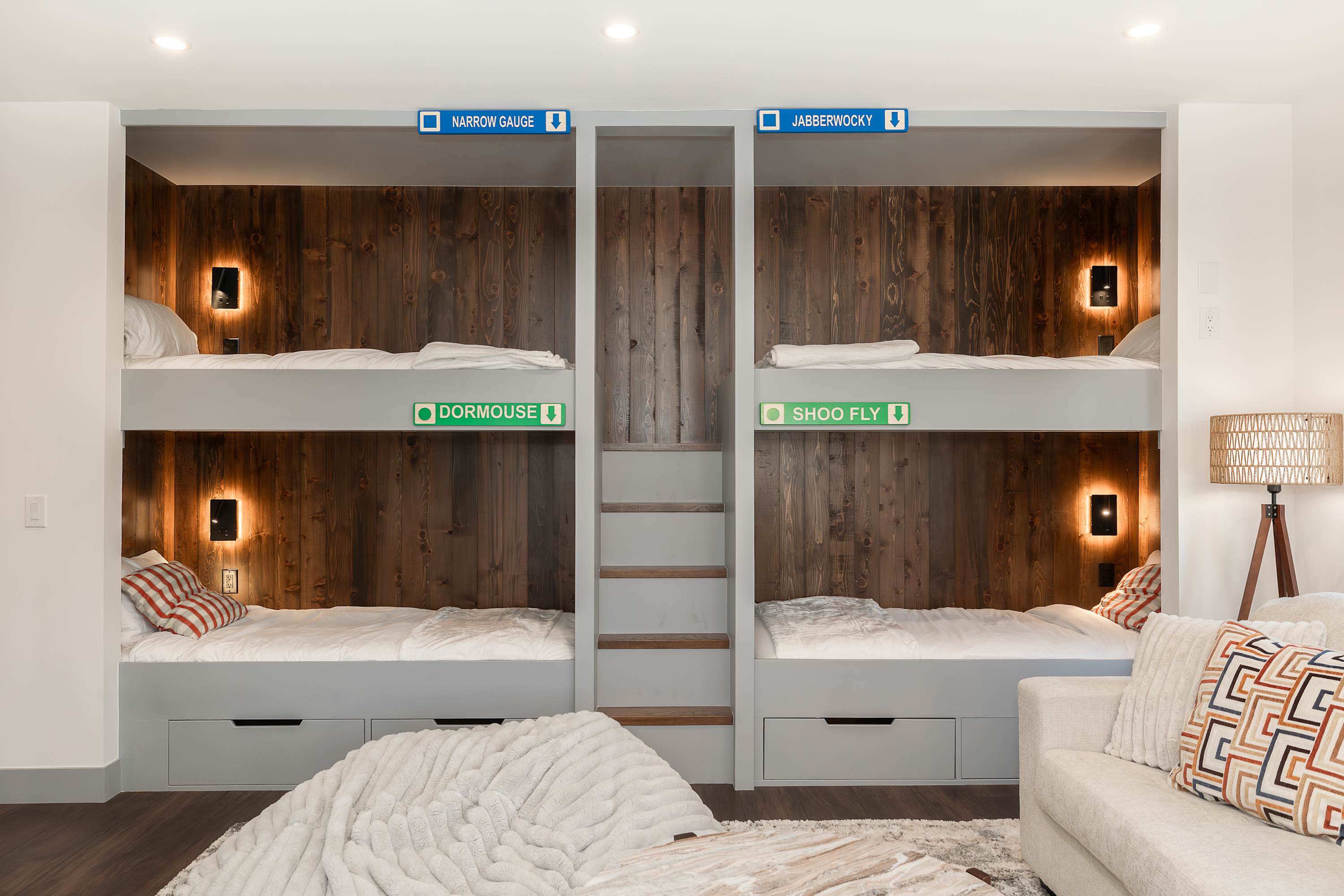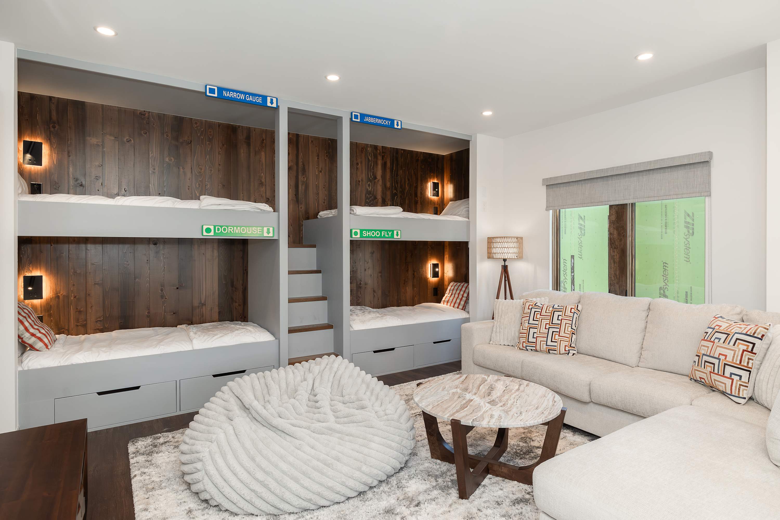• Bunk Area (3rd Floor): Two twin over twin bunks located in the upstairs living area