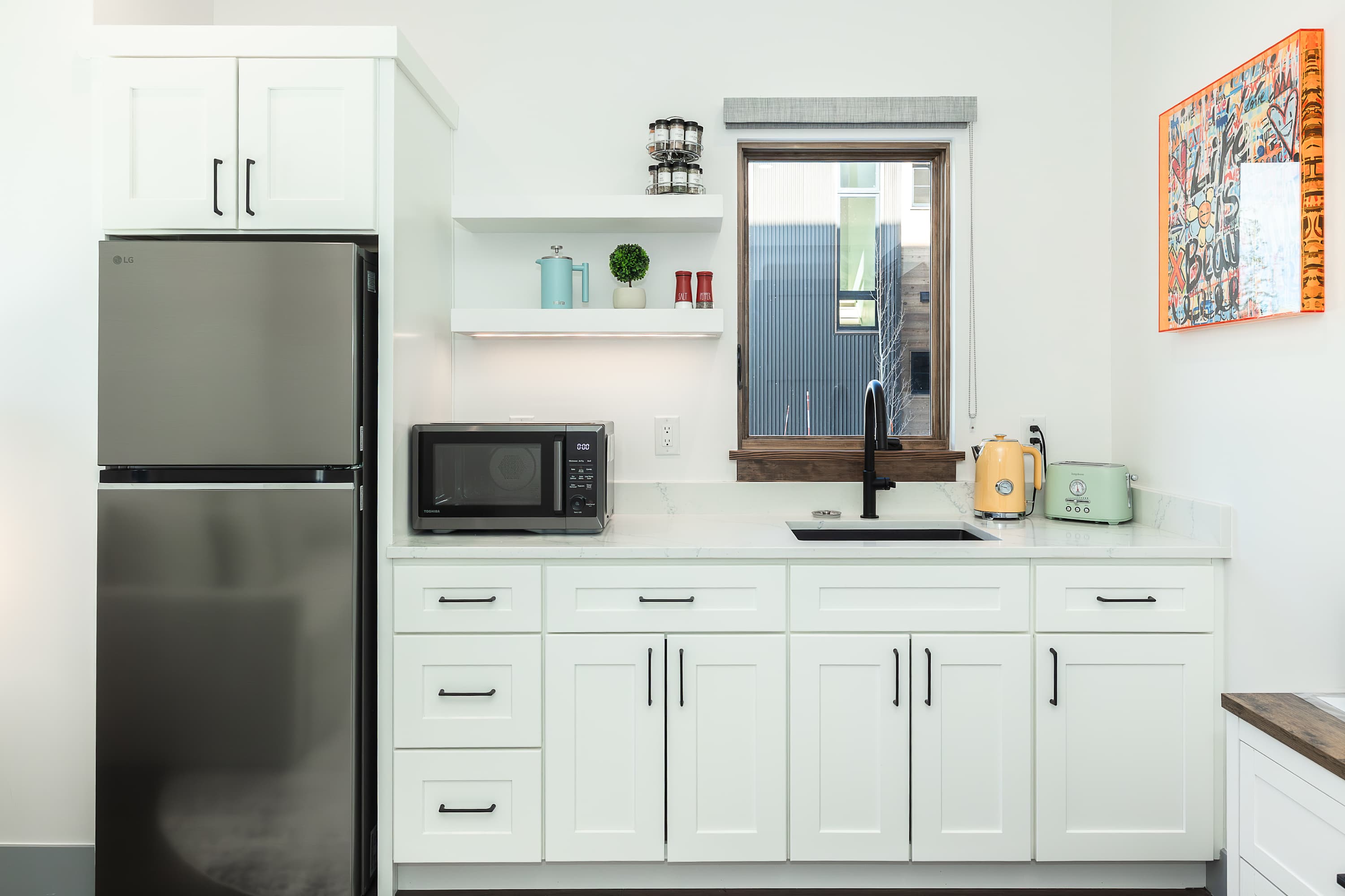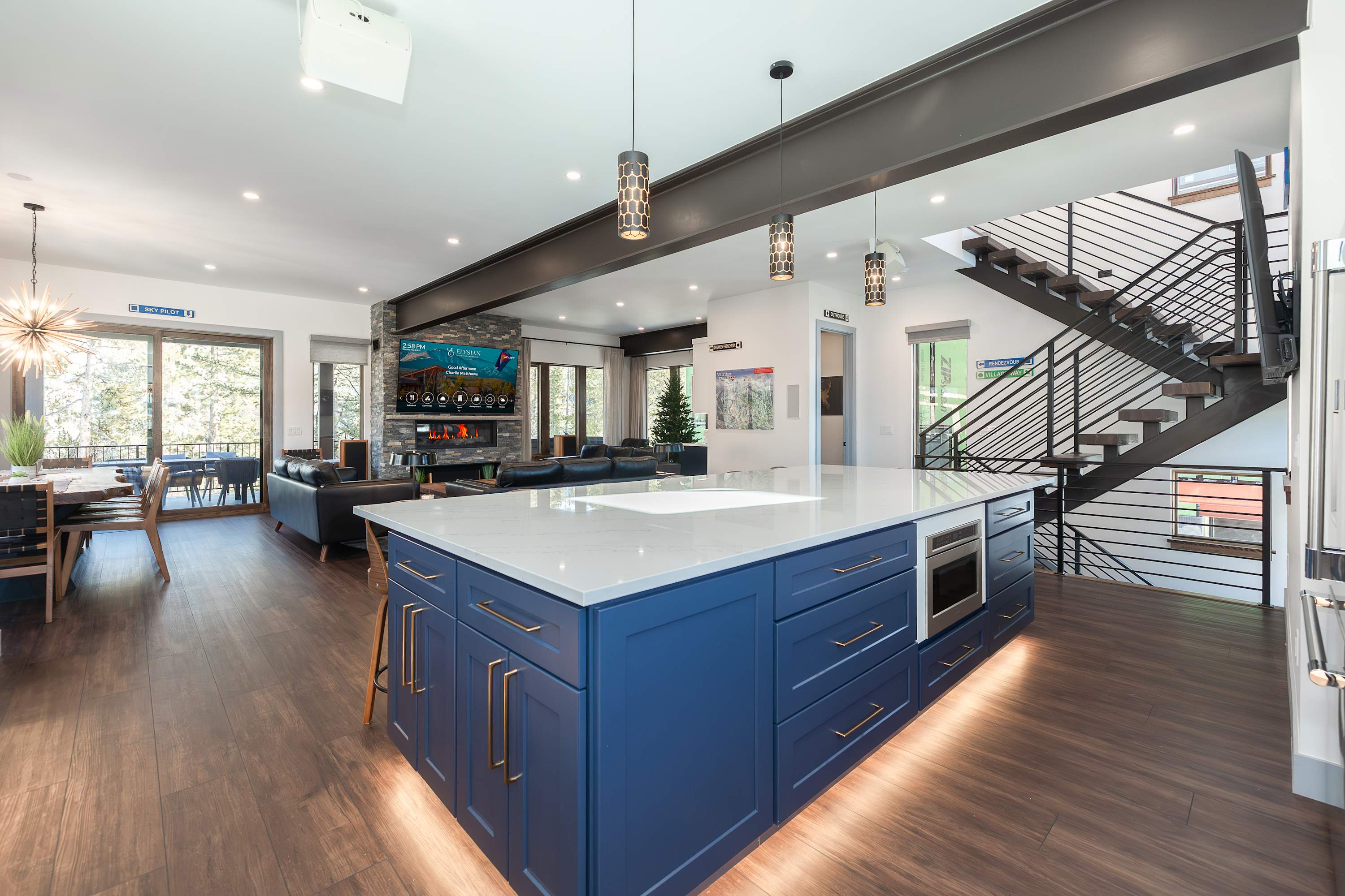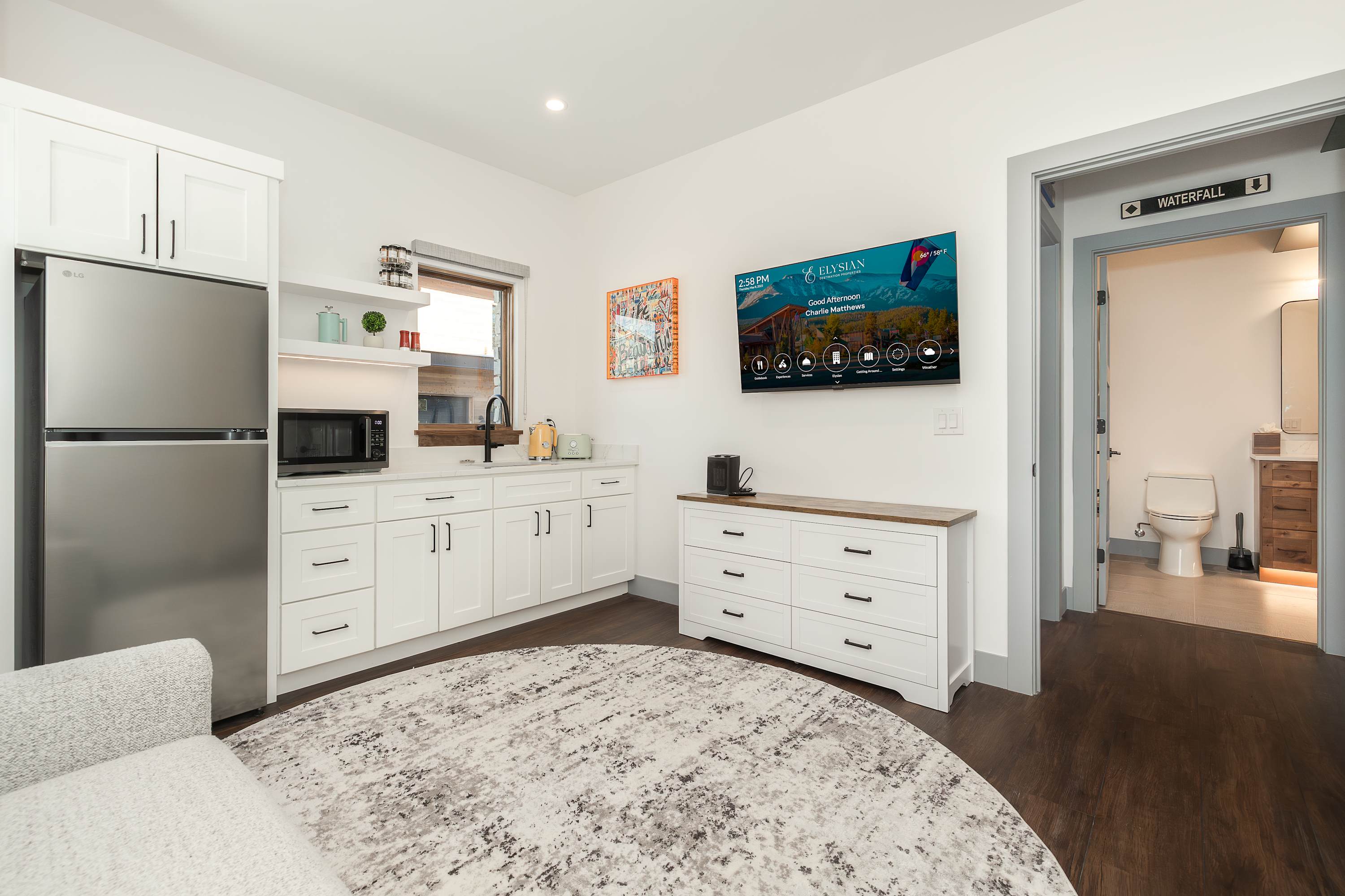 Upstairs, an additional living space offers flexibility for families and groups, creating a dedicated area for movie nights, games, or quiet downtime. Downstairs, a secondary kitchenette and lounge provide another layer of privacy and convenience, making this home exceptionally well suited for multi generational stays or groups traveling together.