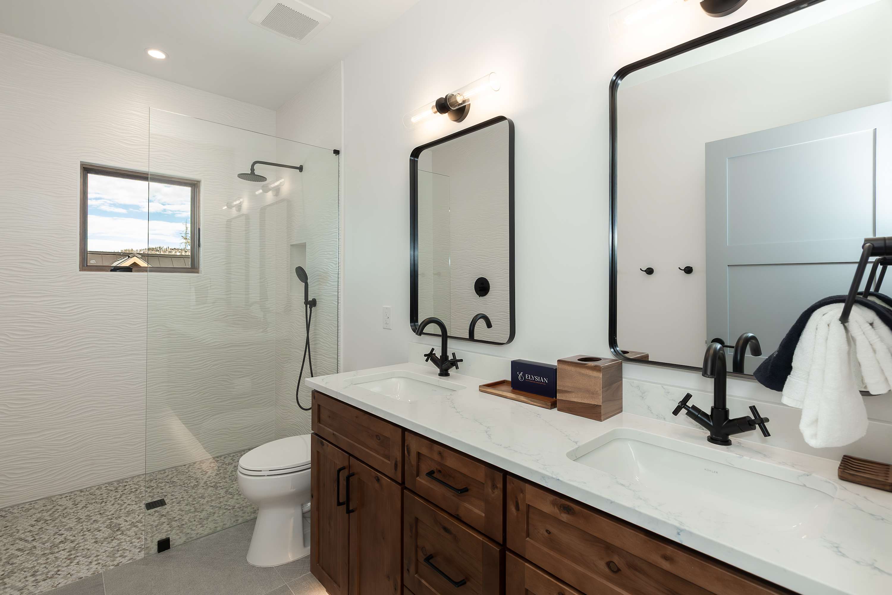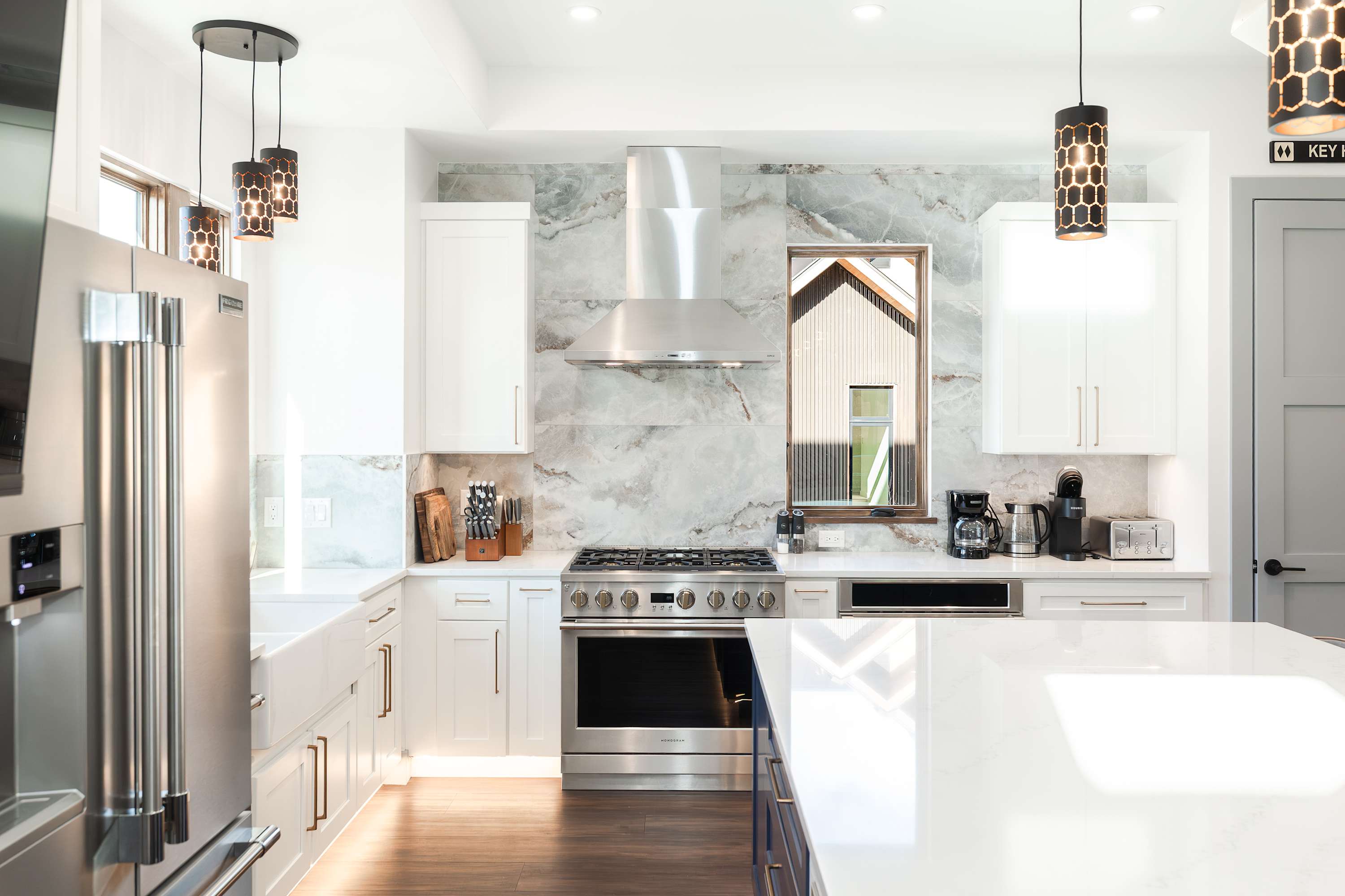 From the moment you step inside, the home opens into a light filled gathering space where clean lines, rich textures, and intentional design set the tone for a memorable stay.