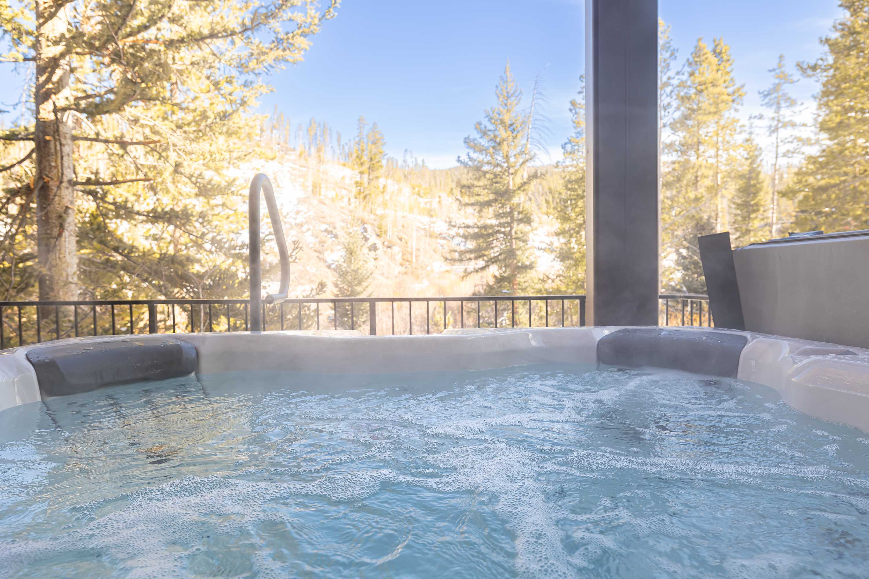 After a day exploring the mountains, retreat outdoors to the private hot tub, perfectly positioned for relaxation under the stars.