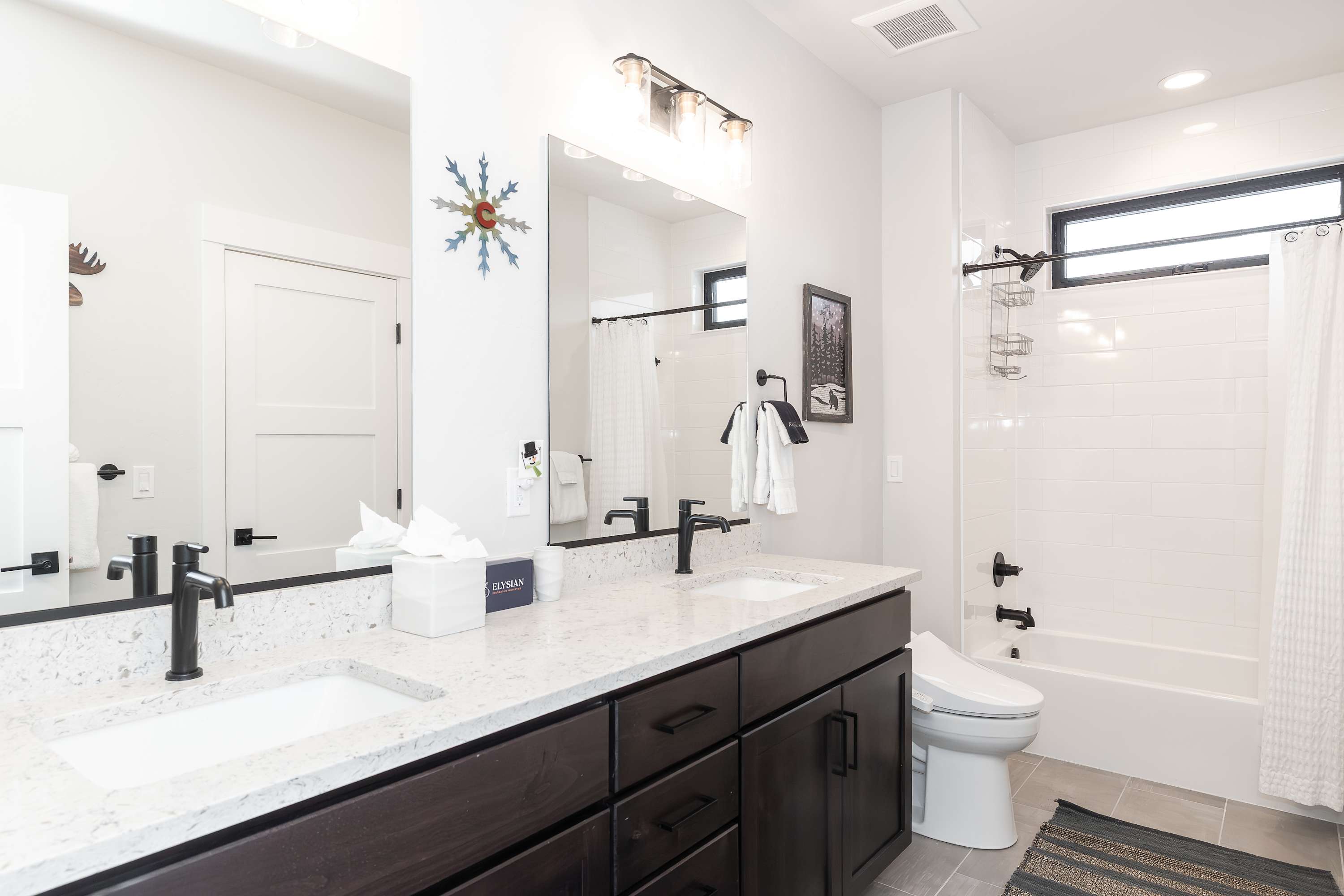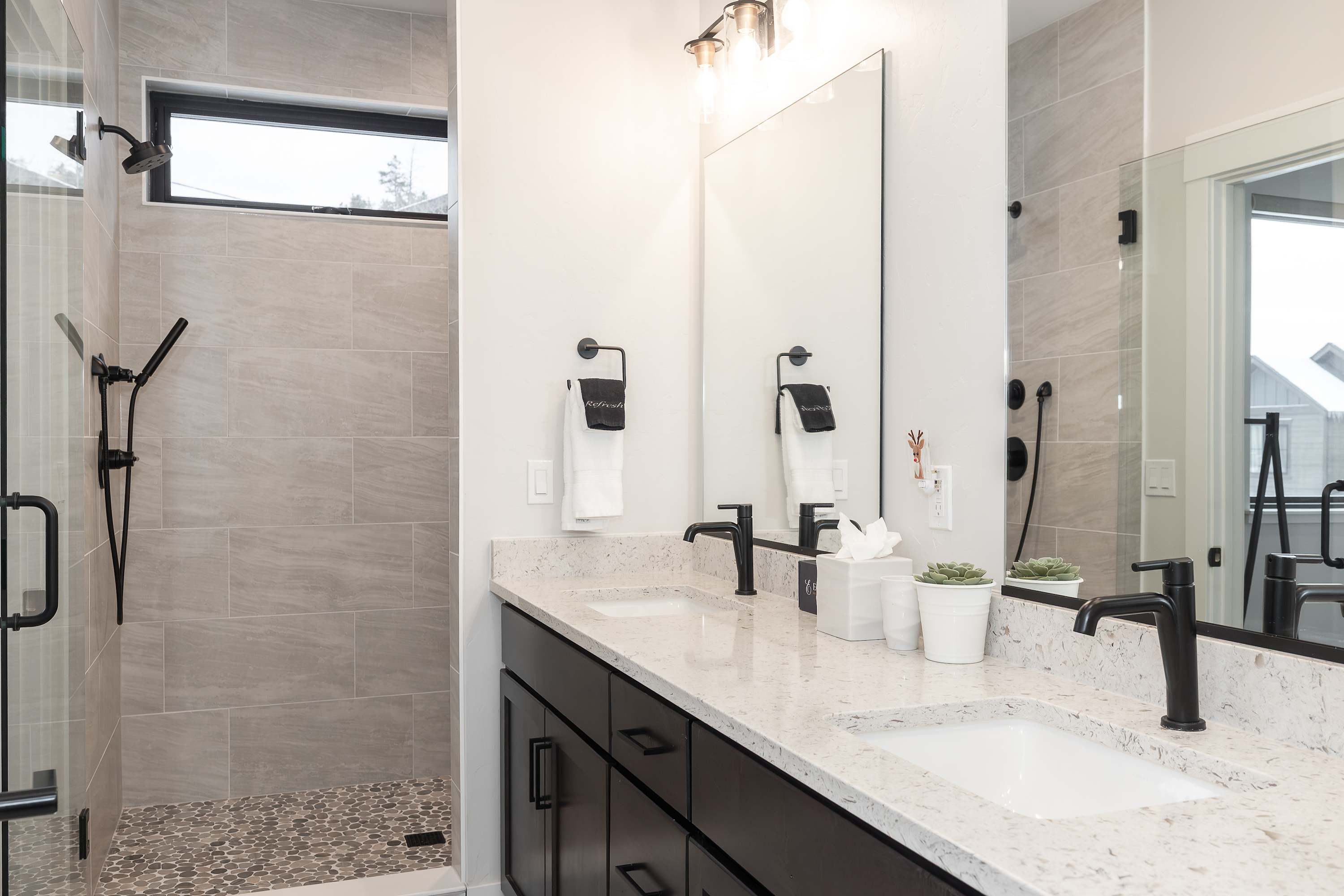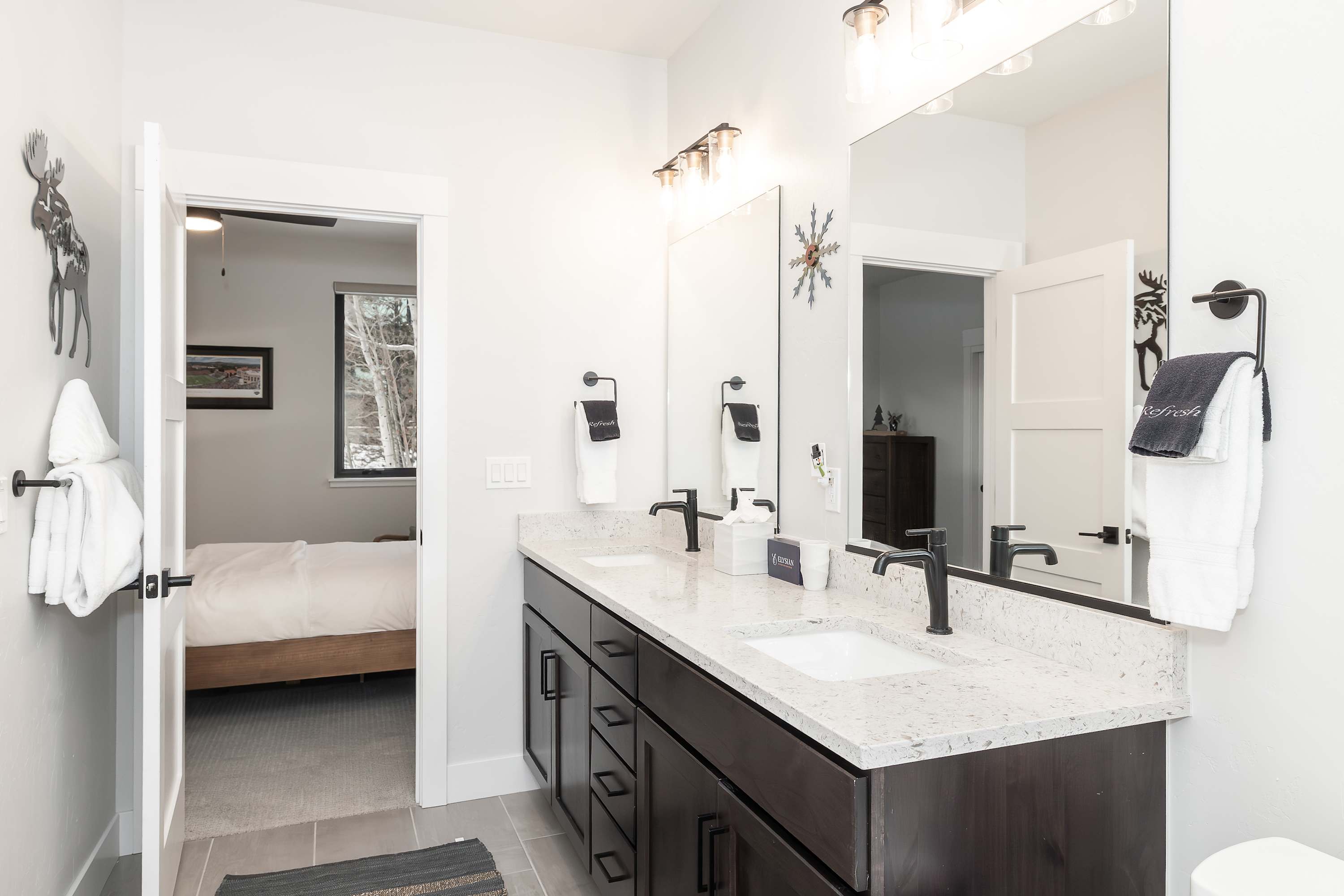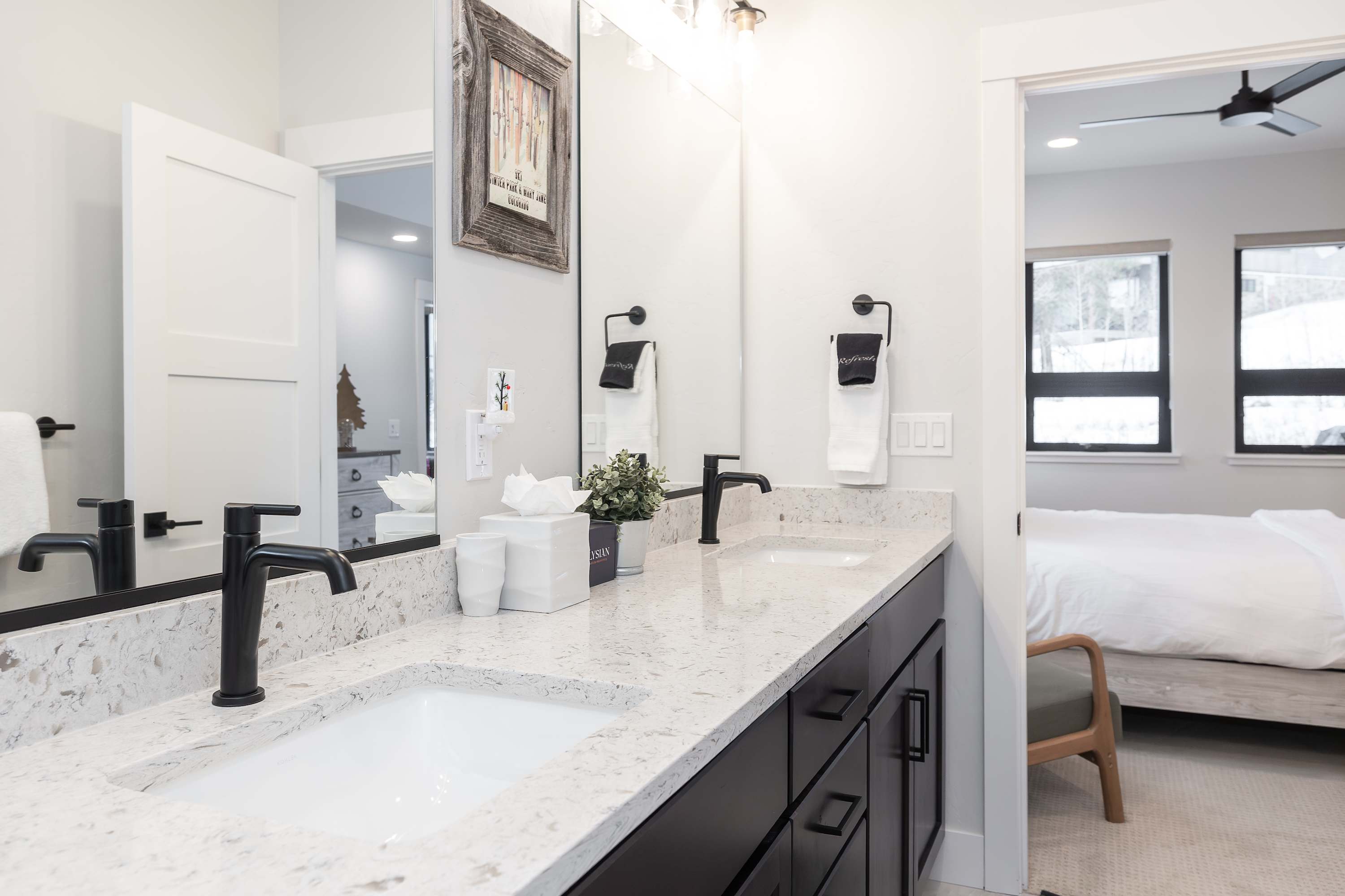 Each bedroom is designed as a private sanctuary, finished with hotel quality linens, serene materials, and thoughtful layouts that invite deep rest. Dual sink vanities in the baths keep mornings smooth and unhurried, even with a full house.
