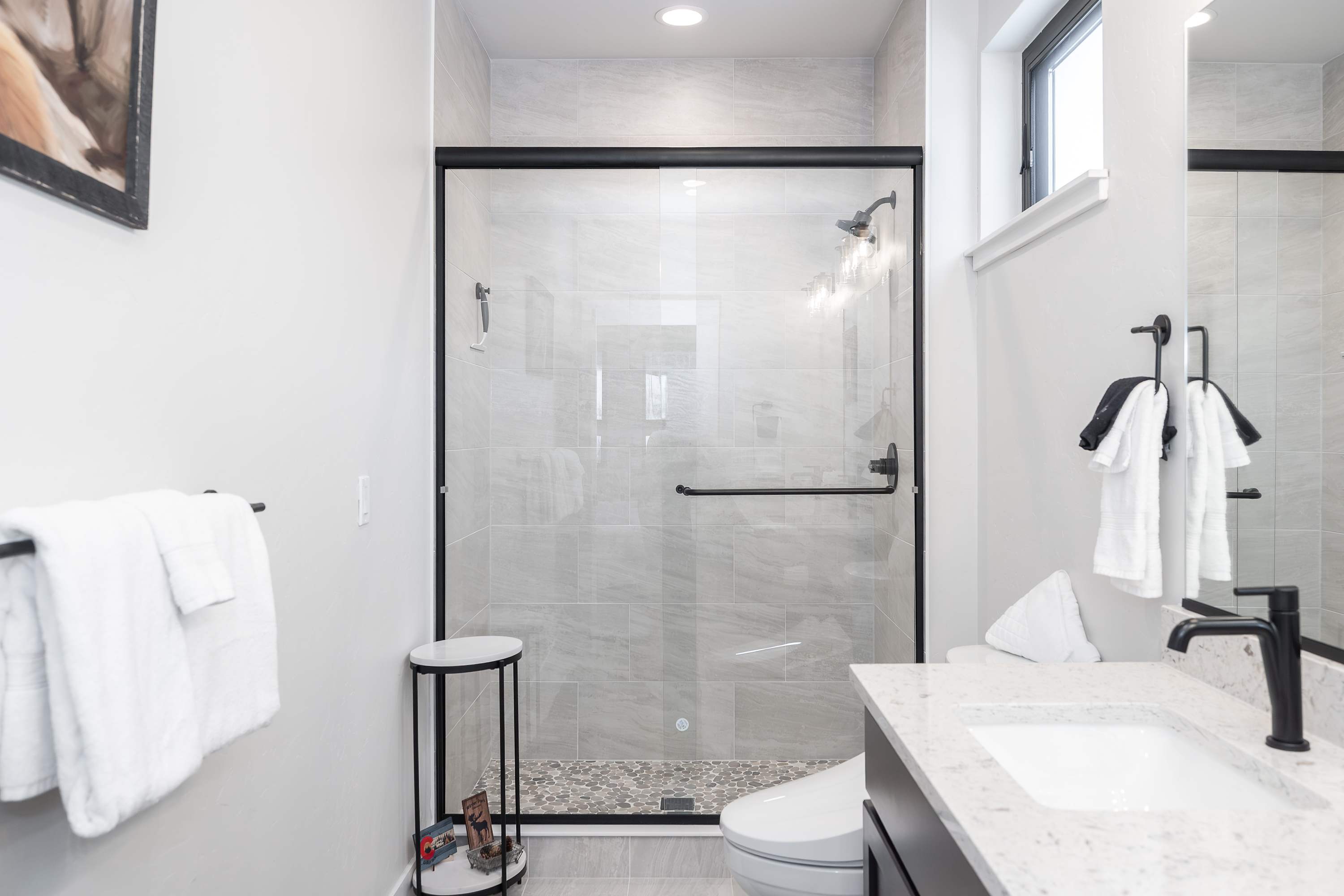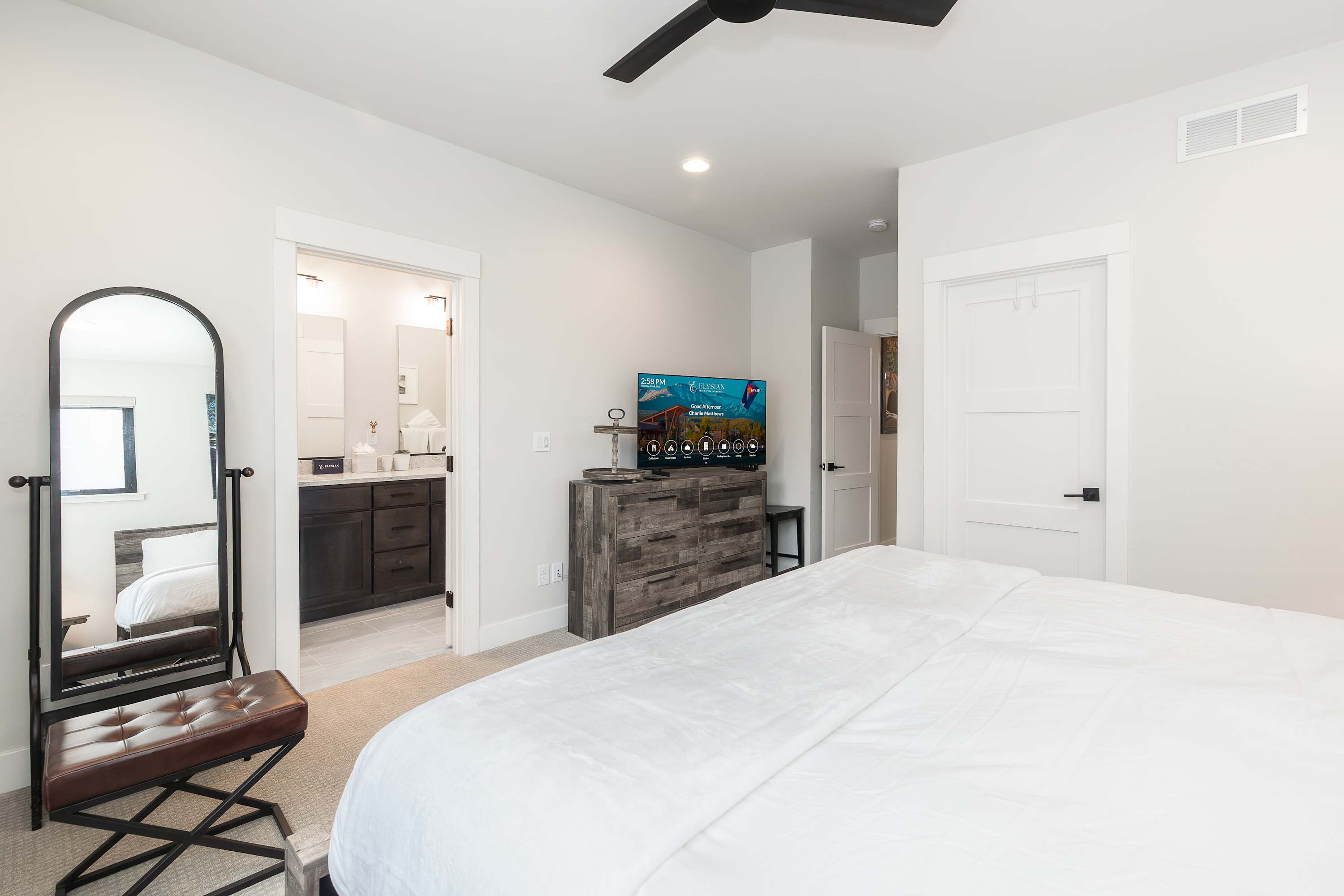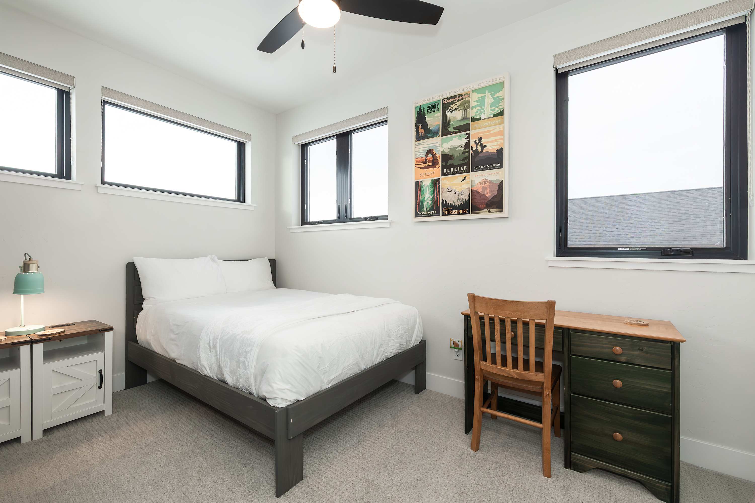 • Guest Room (Upper Level): Queen bed, direct access to upper level bathroom