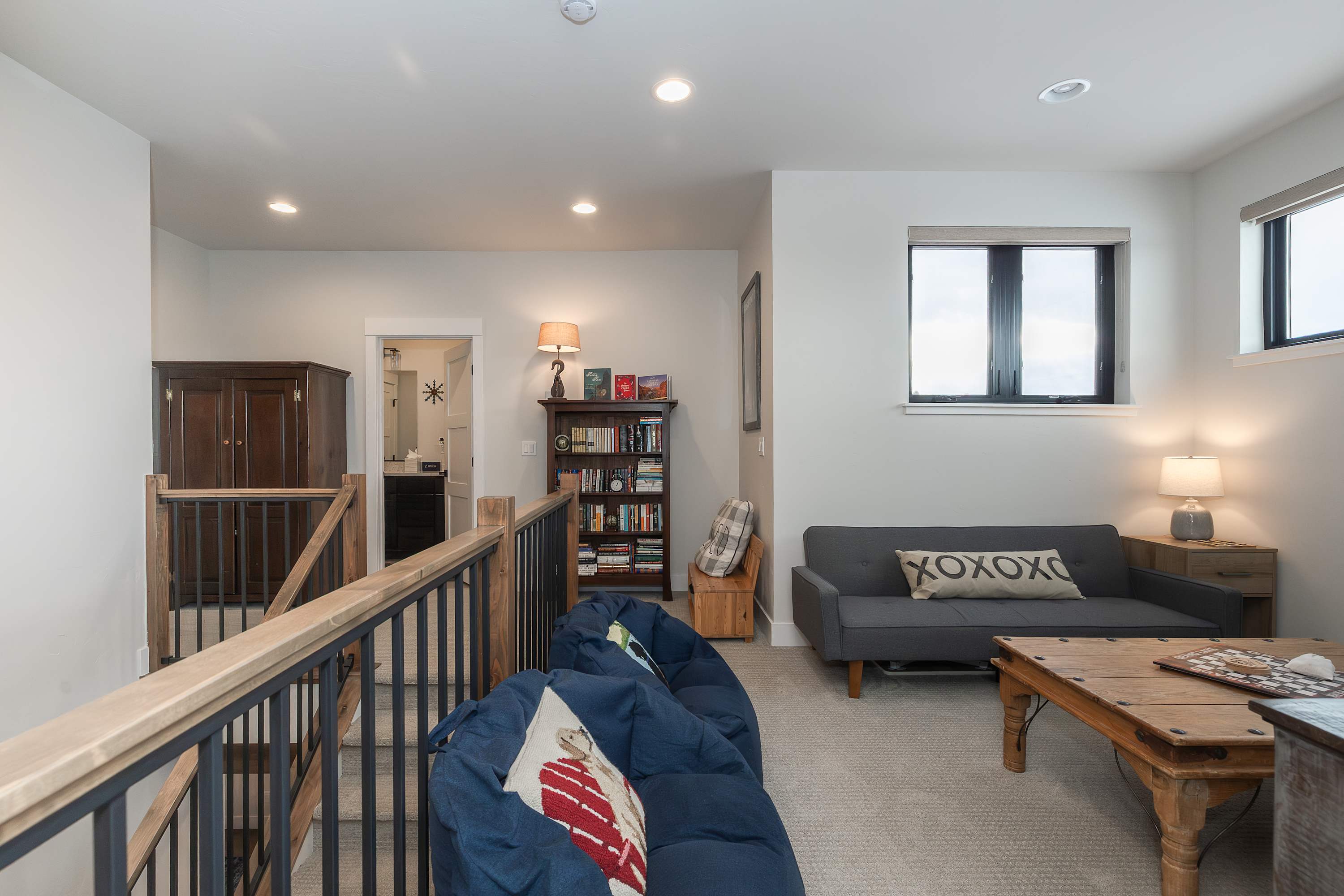 Upstairs, a spacious loft serves as a secondary living area, ideal for movie nights, games, or a quieter retreat away from the main gathering space. This flexible layout allows everyone room to relax while still feeling connected.