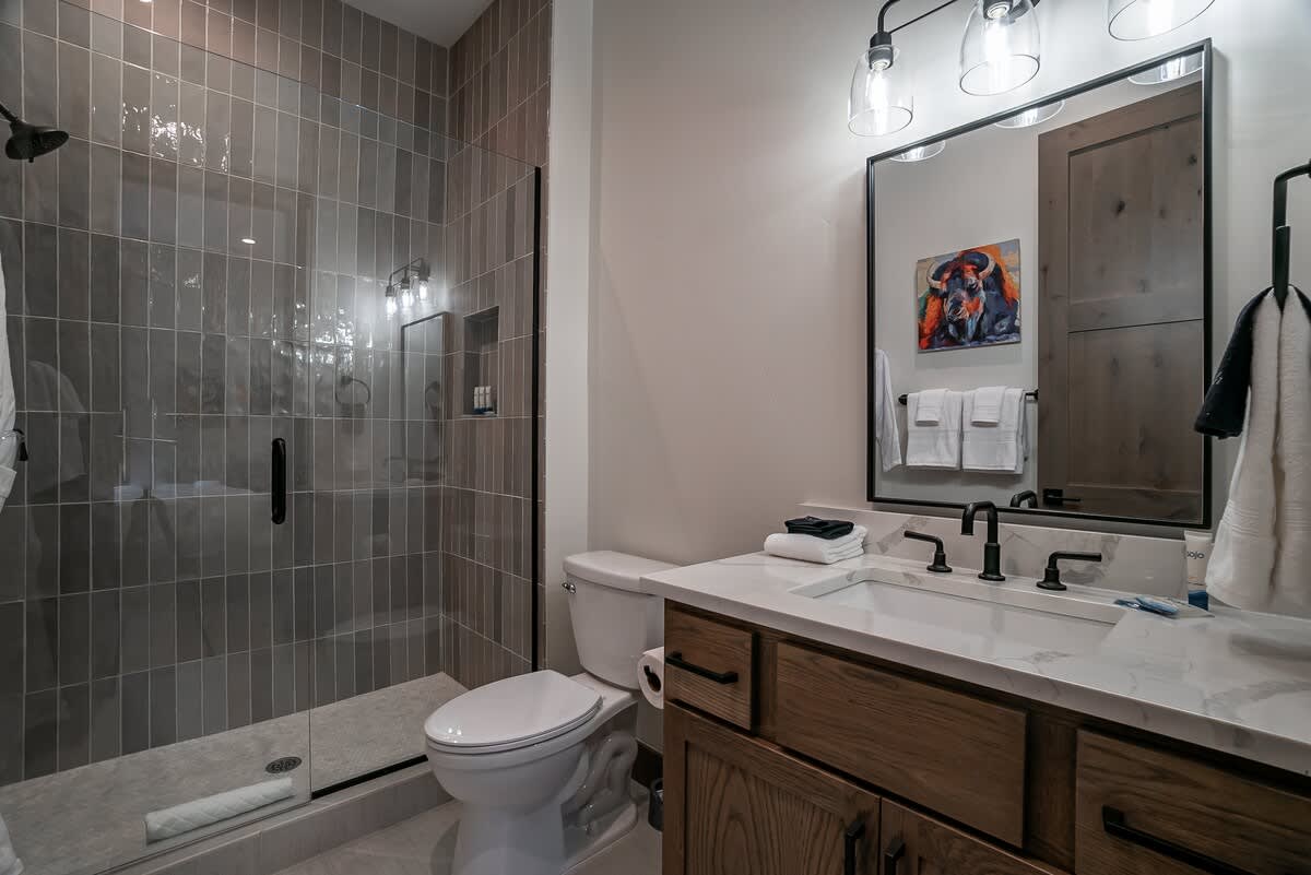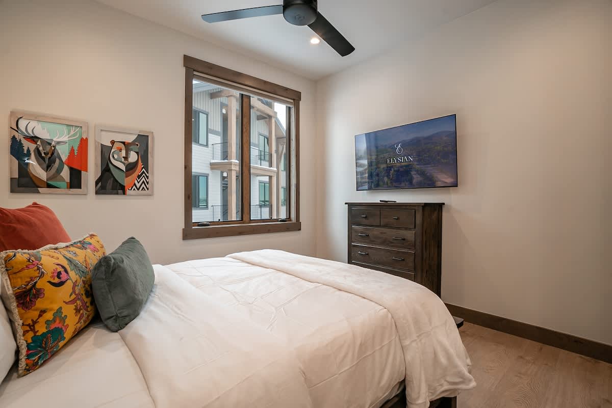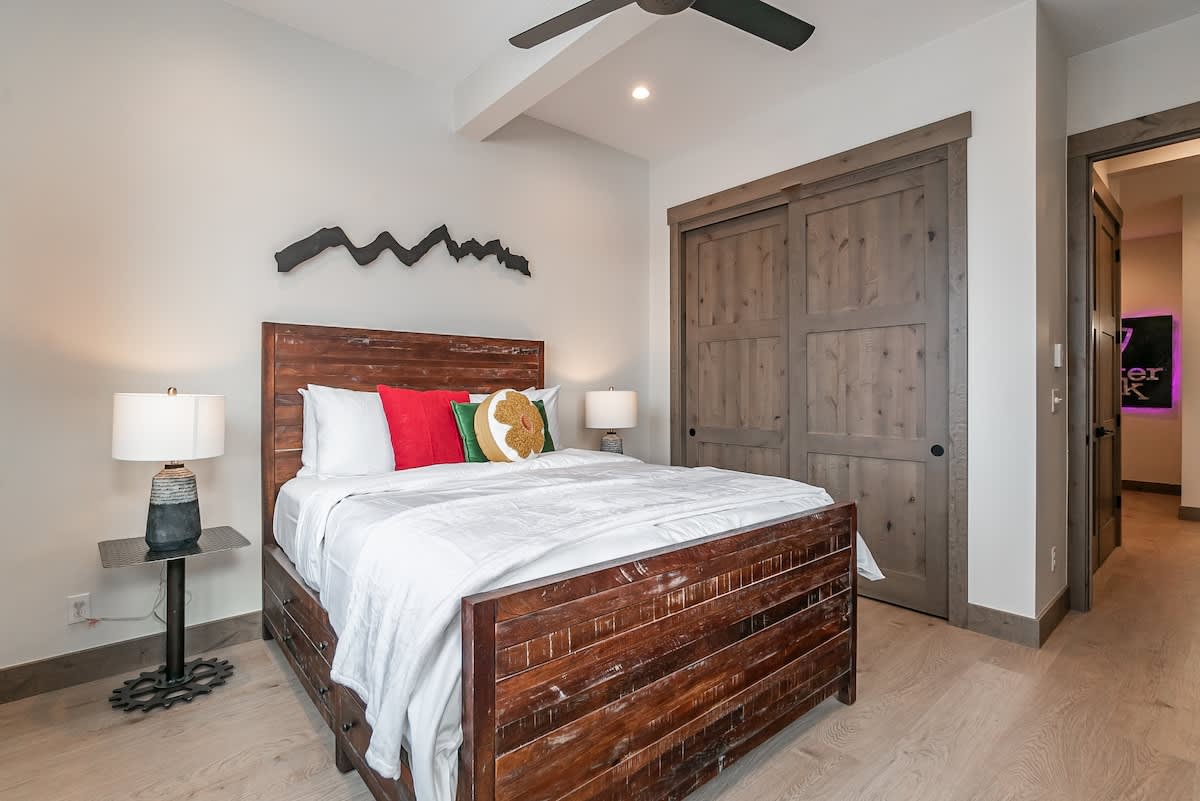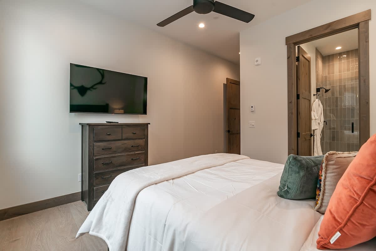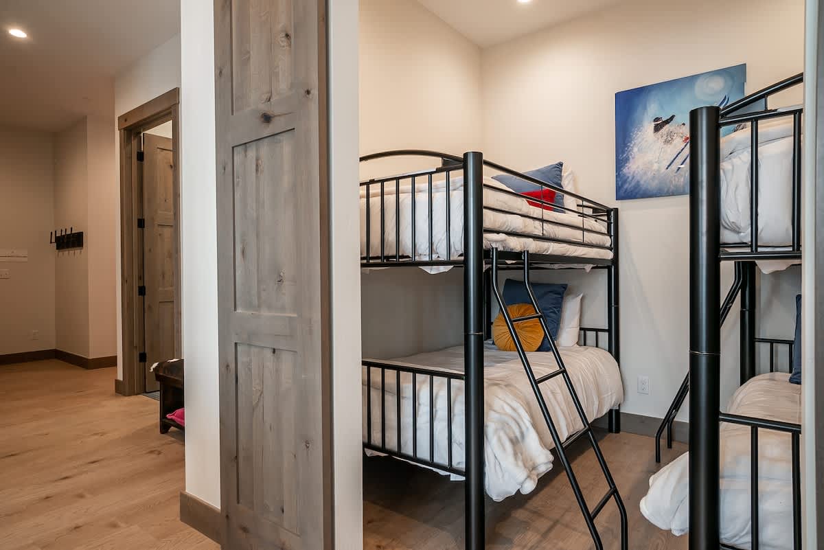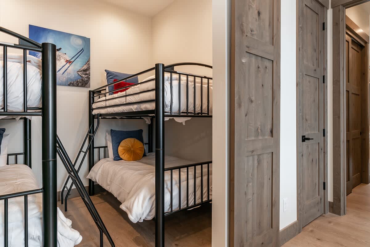 Each of the three bedrooms is a sanctuary of softness and style, with plush bedding, gentle lighting, and thoughtful details that invite deep rest after a day of mountain adventure.
