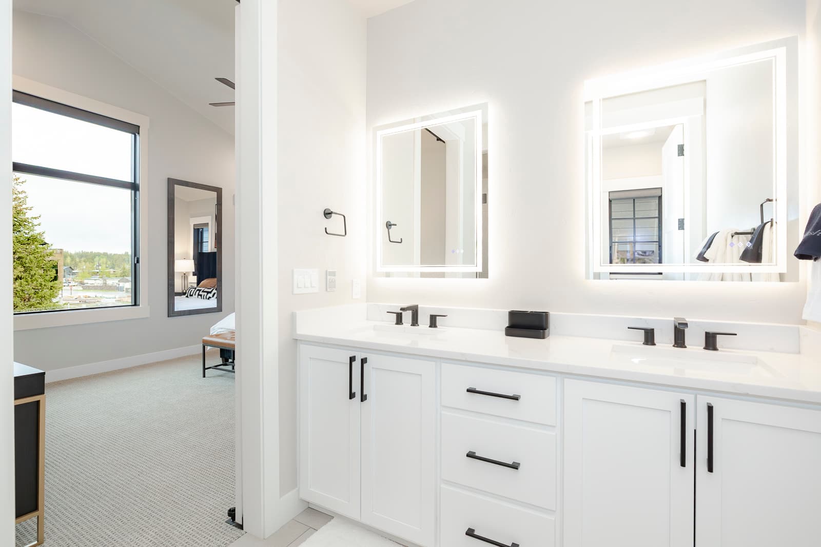 Primary King Suite (Upper Level) – Ensuite bath with dual vanities & walk-in shower