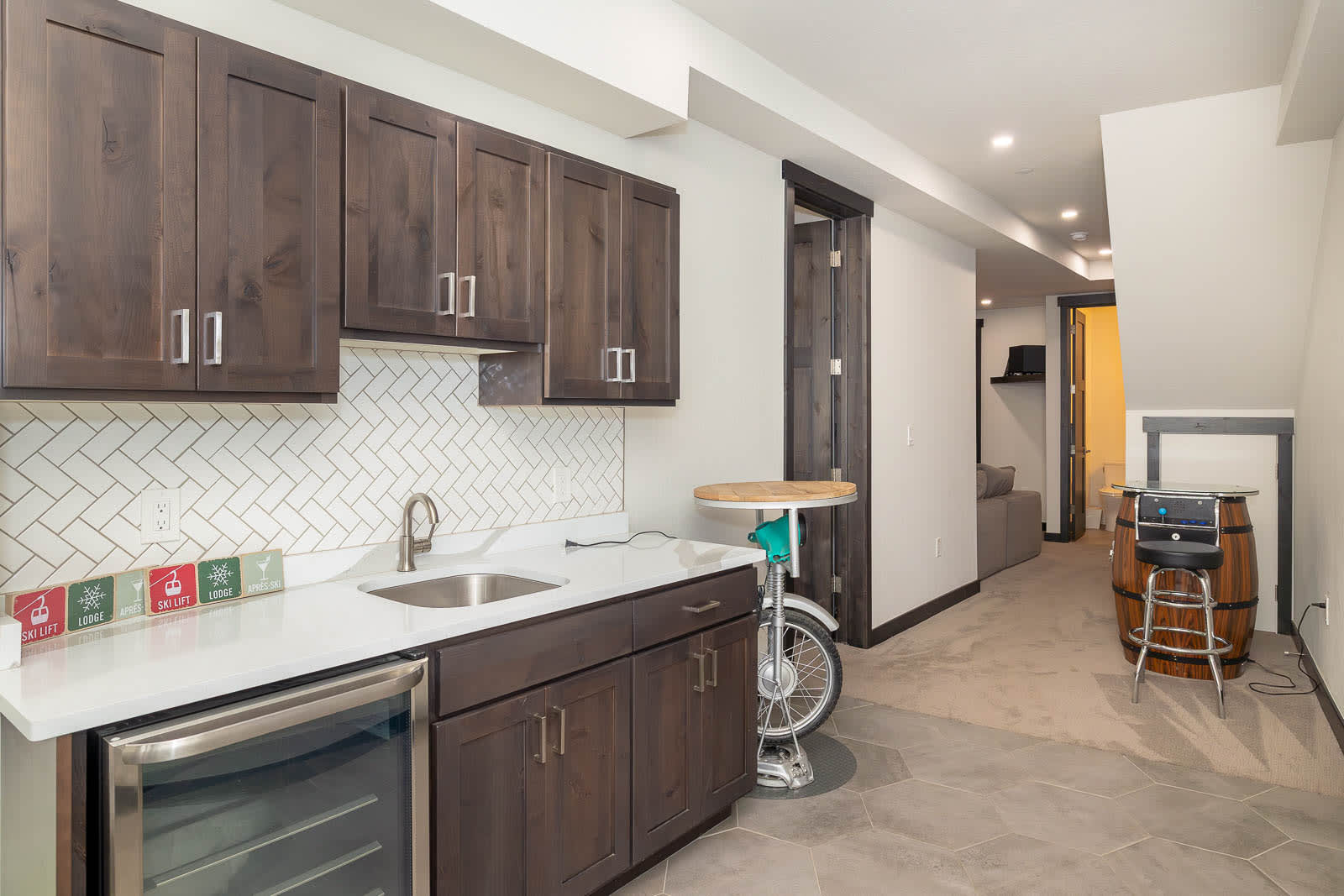 Inside, the open-concept main level encourages connection—whether you’re preparing meals in the chef’s kitchen, sharing stories by the fireplace, or relaxing across multiple living spaces. For added enjoyment, the home features arcade games, classic Nintendo, Smart TVs, and a Sonos sound system, ensuring every moment is as entertaining as it is relaxing.
