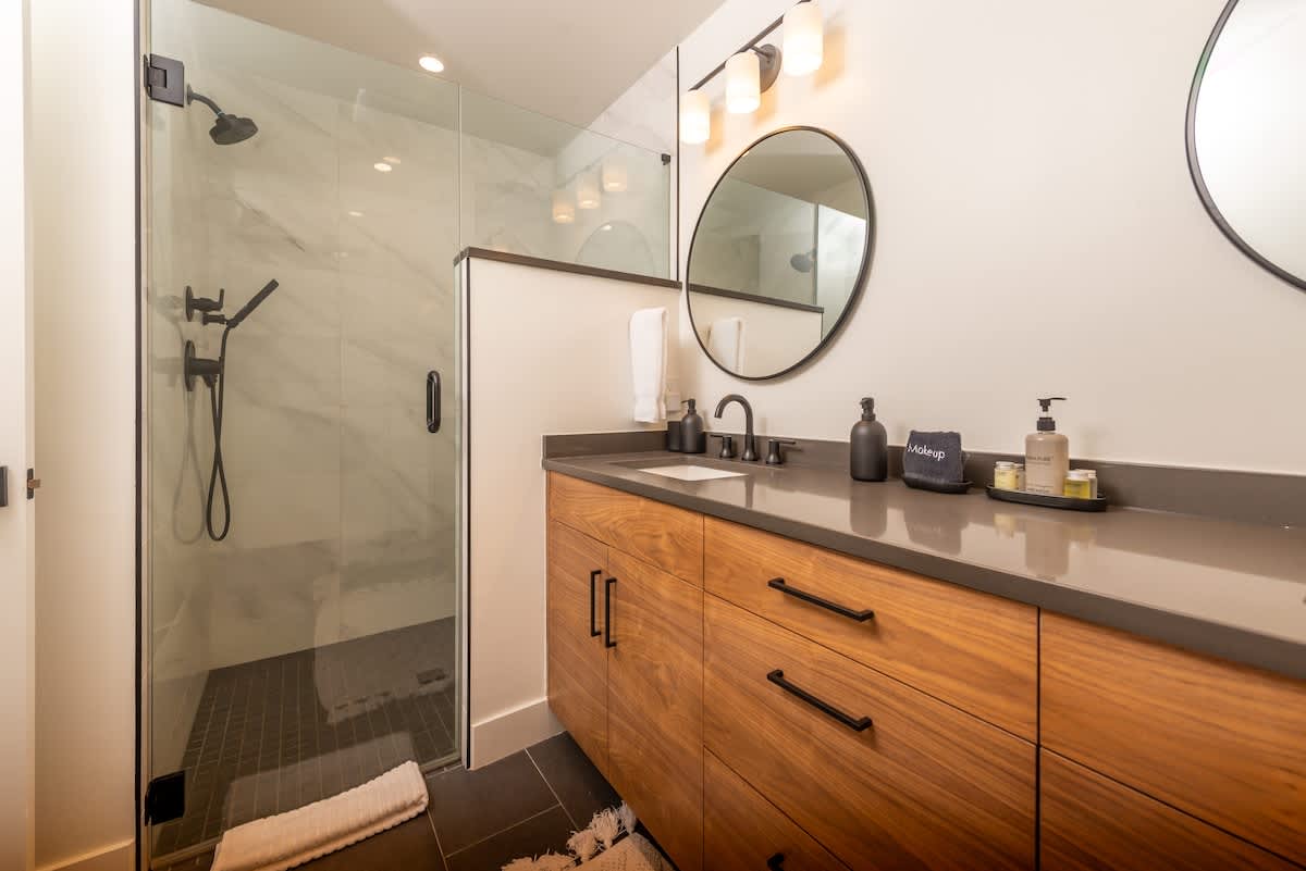 Each of the four bedrooms has its own ensuite bath for maximum comfort and privacy—including a serene primary suite with private deck and outdoor fireplace for your own secluded mountain moment.