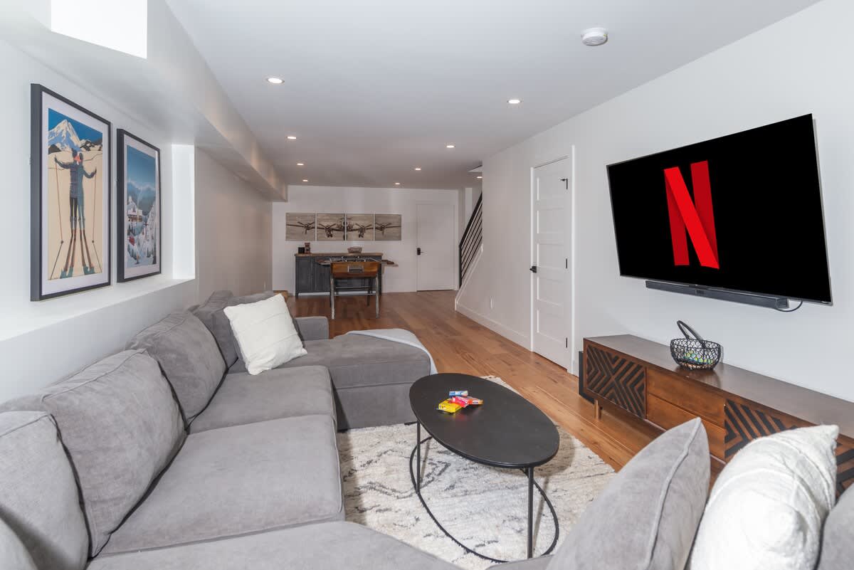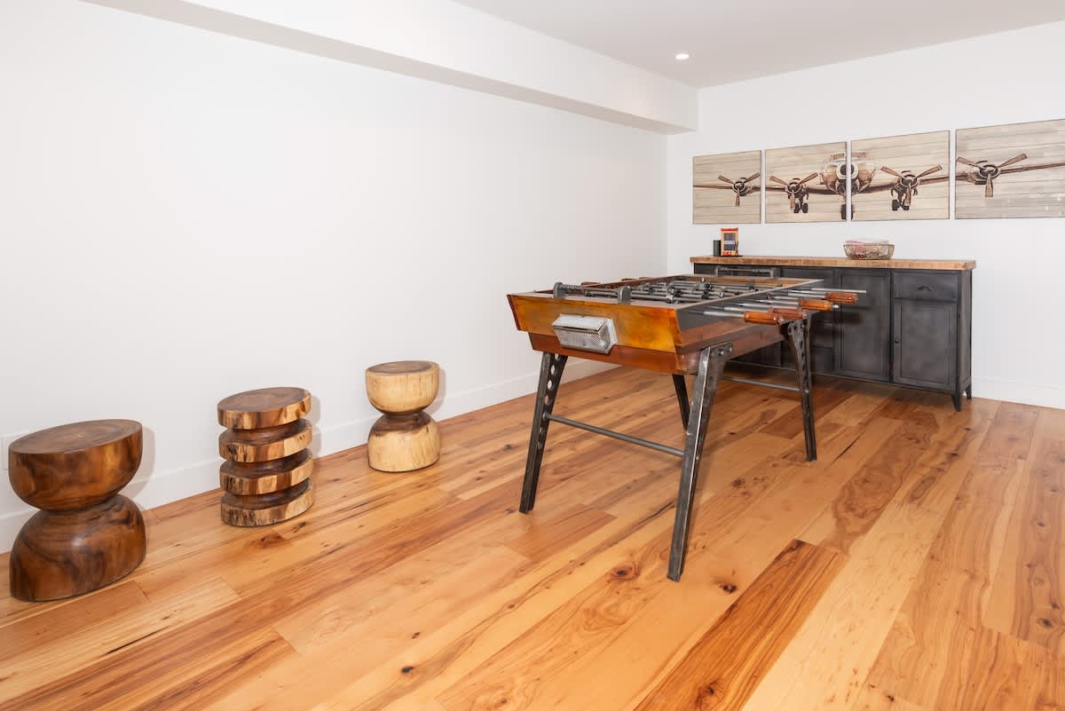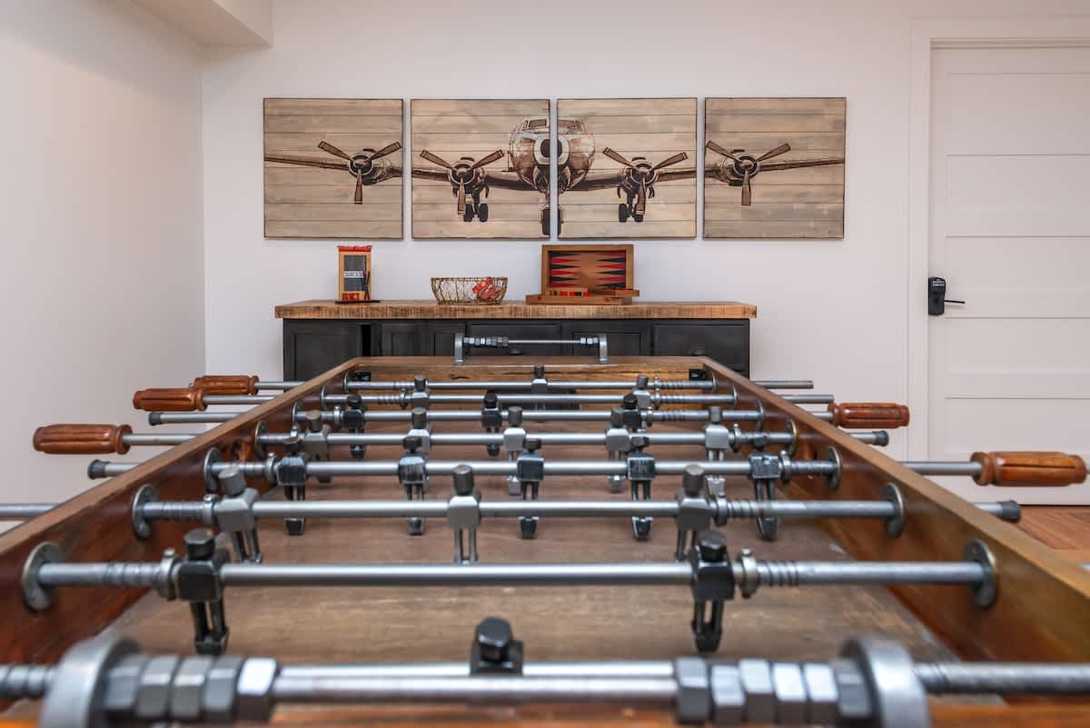 The lower-level family room invites you to gather around for foosball, board games, or movie night. There’s room here for laughter, stories, and downtime.
