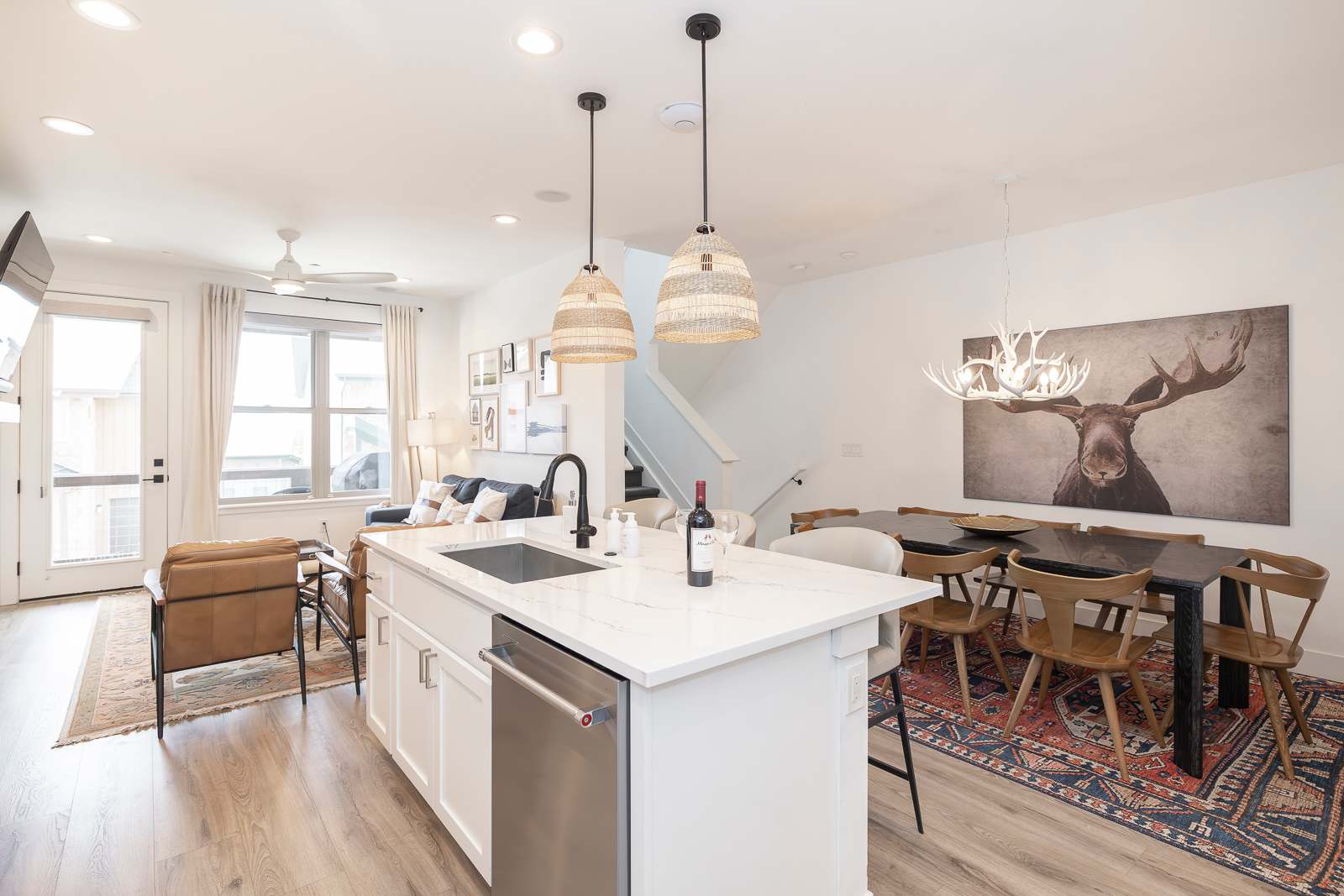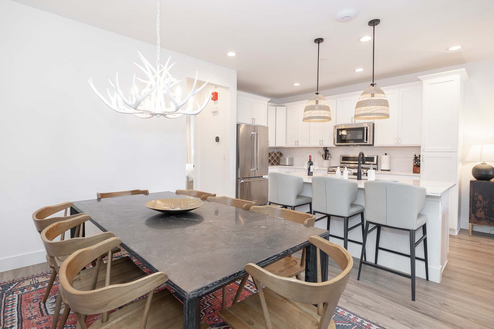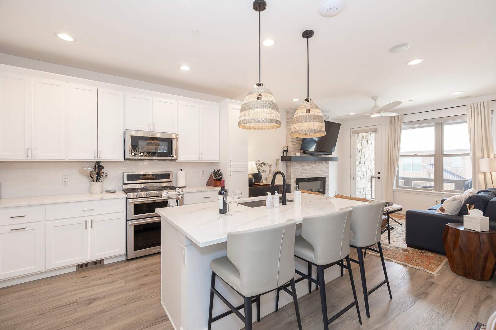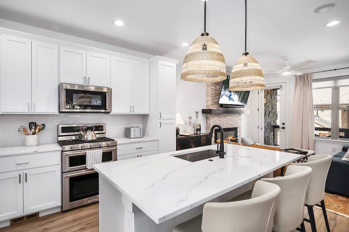 Prepare meals with ease in the chef-style kitchen, complete with premium cookware and seating for eight—perfect for après-ski dinners or cozy brunches before hitting the slopes.