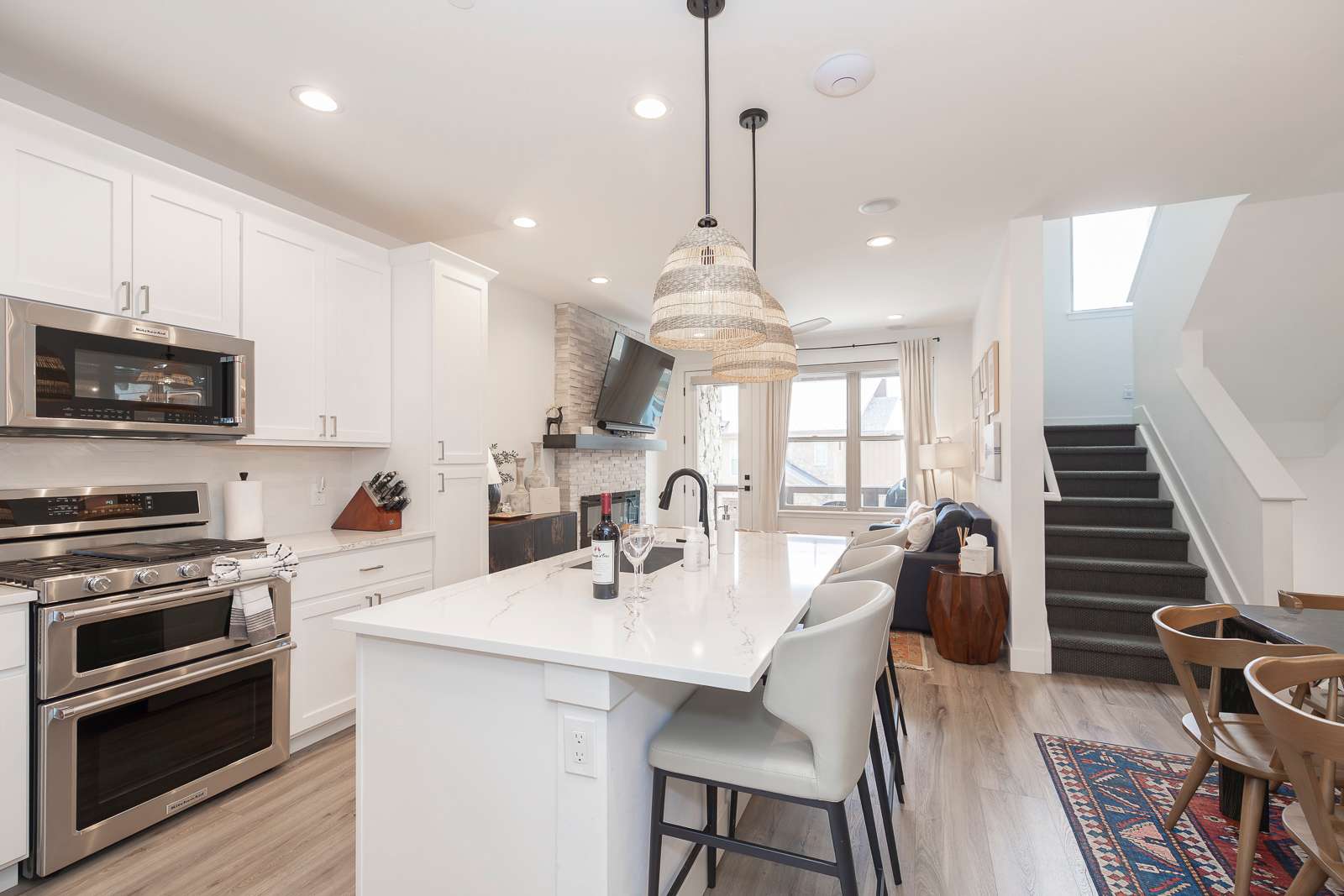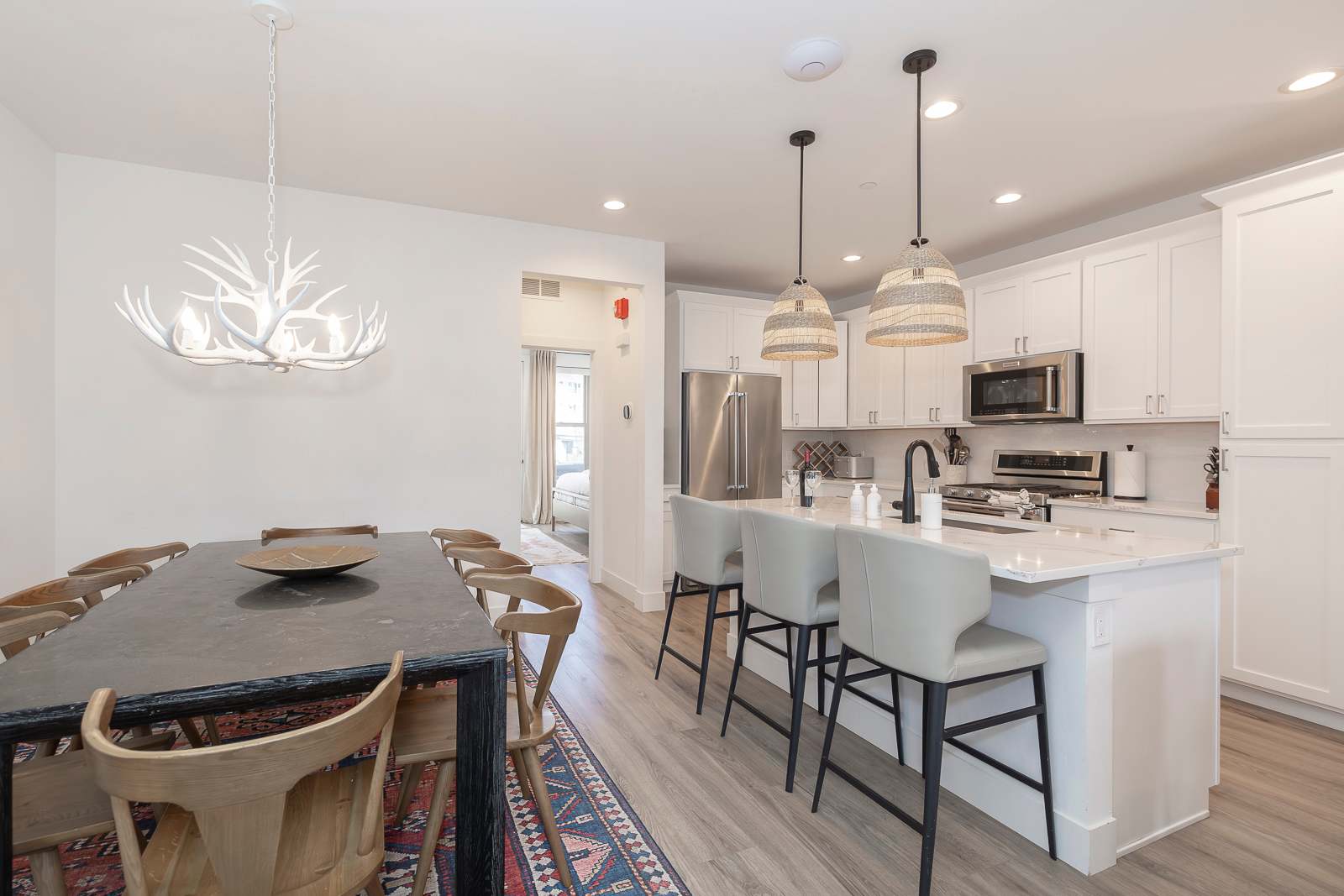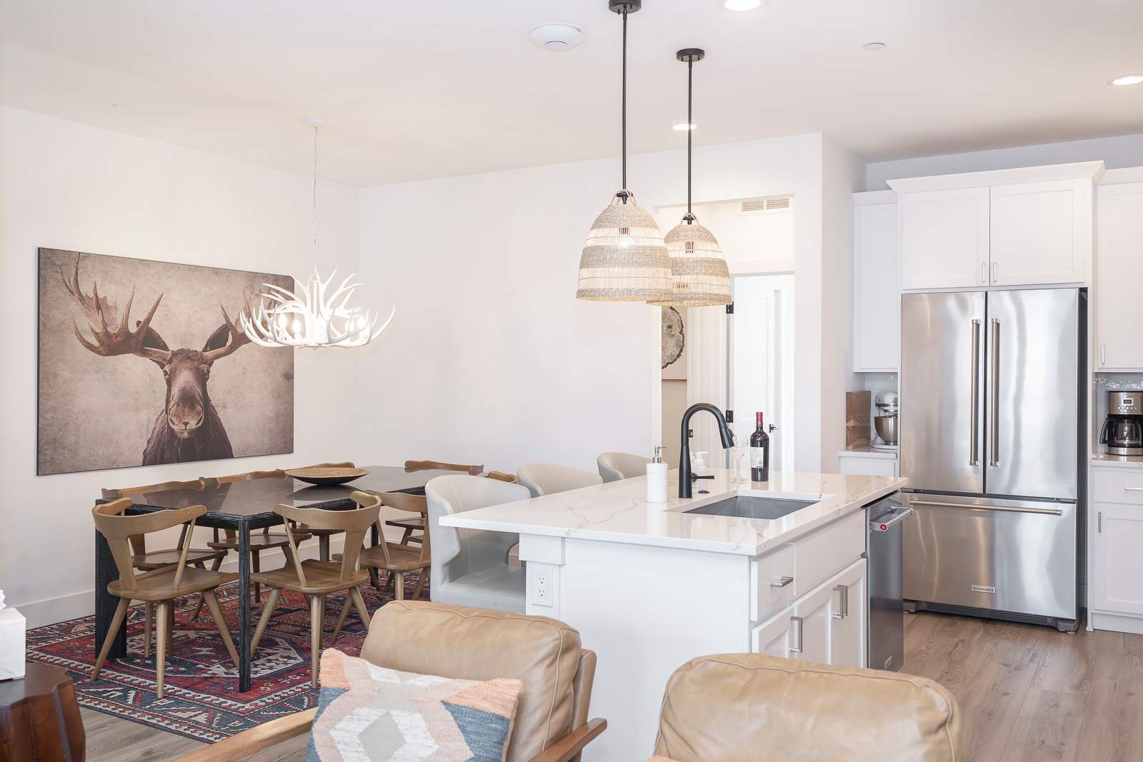 Prepare meals with ease in the chef-style kitchen, complete with premium cookware and seating for eight—perfect for après-ski dinners or cozy brunches before hitting the slopes.