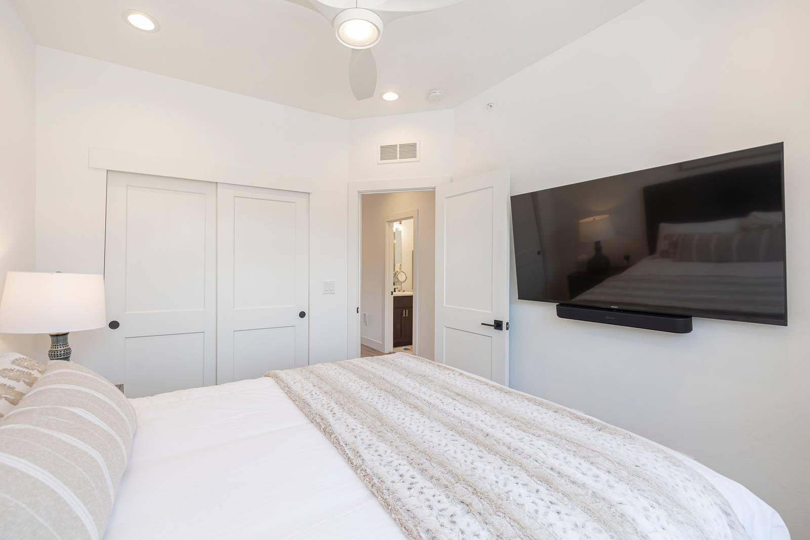 All beds feature Beauty Rest Harmony mattresses, luxe linens, and even the sofa bed delivers top-tier comfort. Each bedroom includes Apple Watch and phone chargers, high-speed hardwired streaming, and 65" Smart TVs with Sonos soundbars.