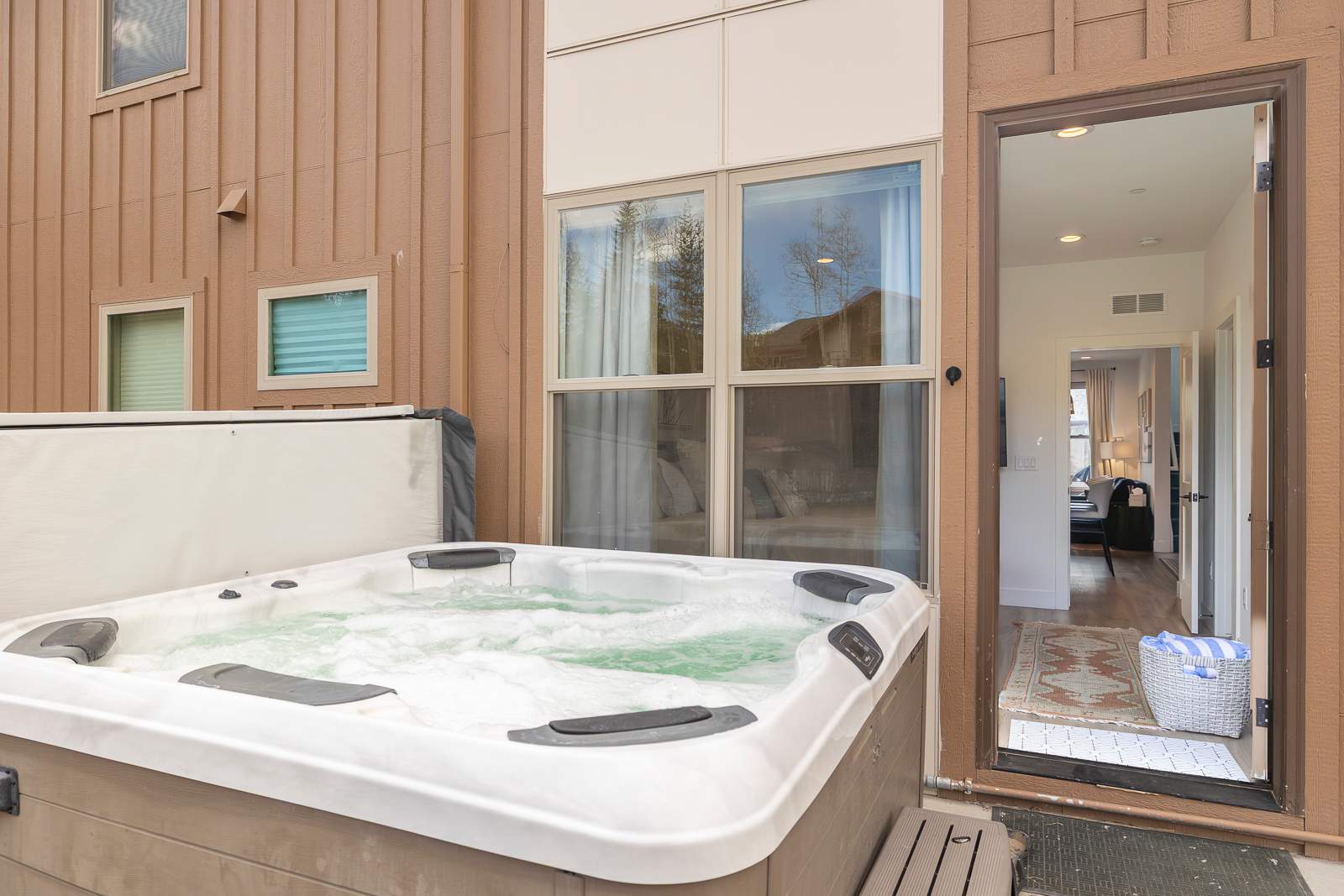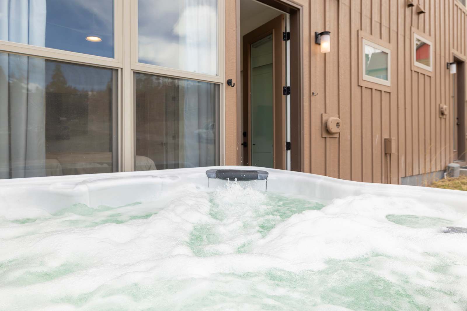 Soak in the views and soothe tired legs in the private outdoor hot tub—the perfect end to a day of skiing or winter exploration.
