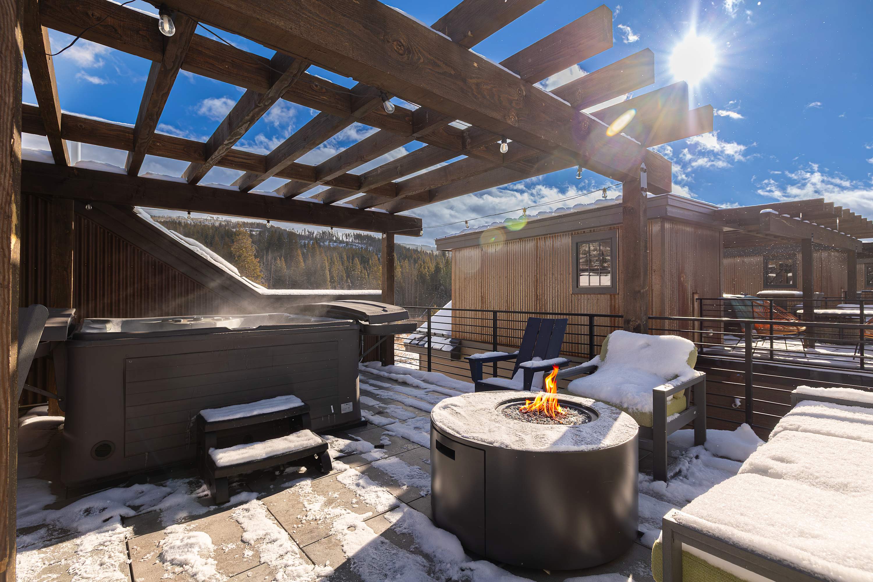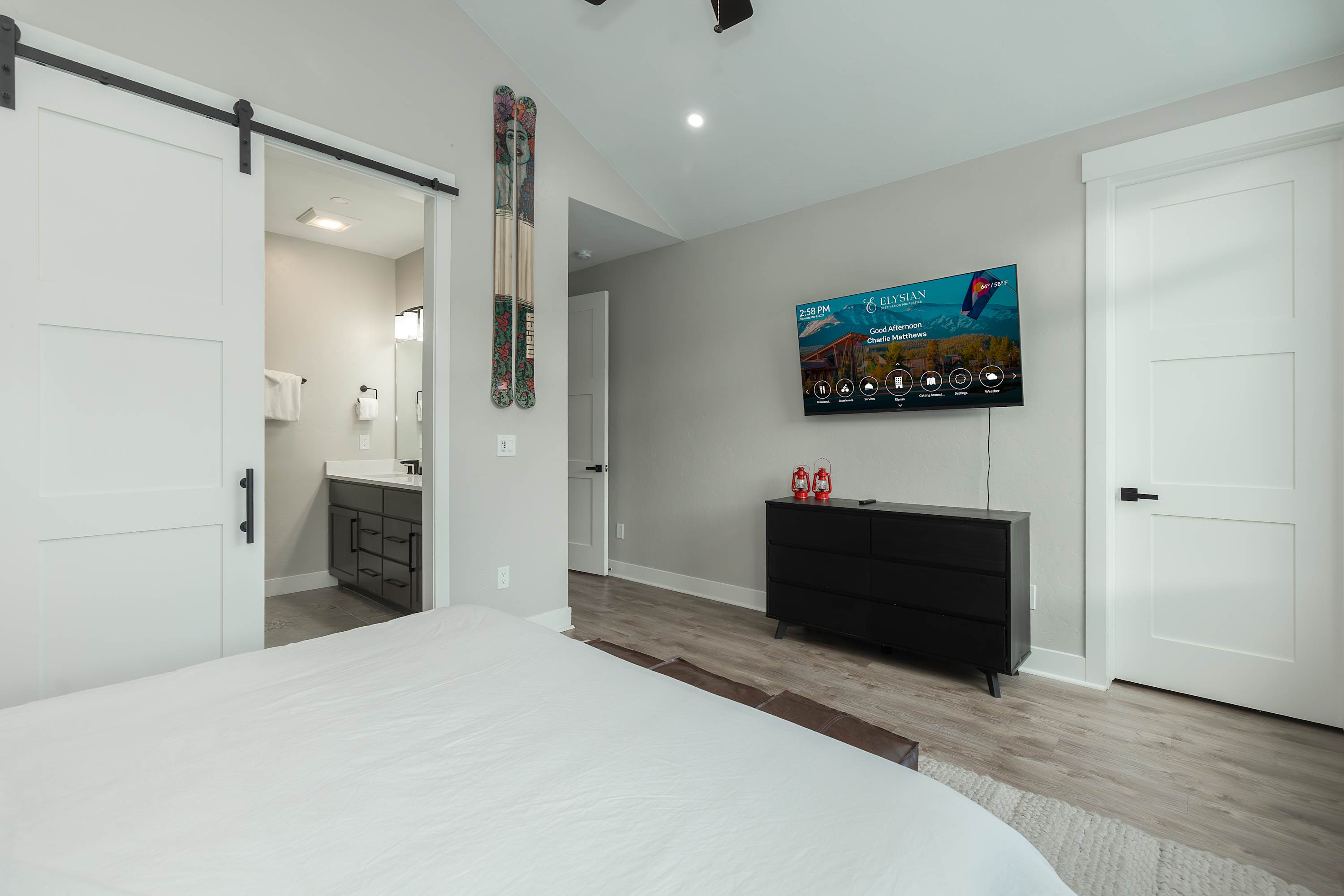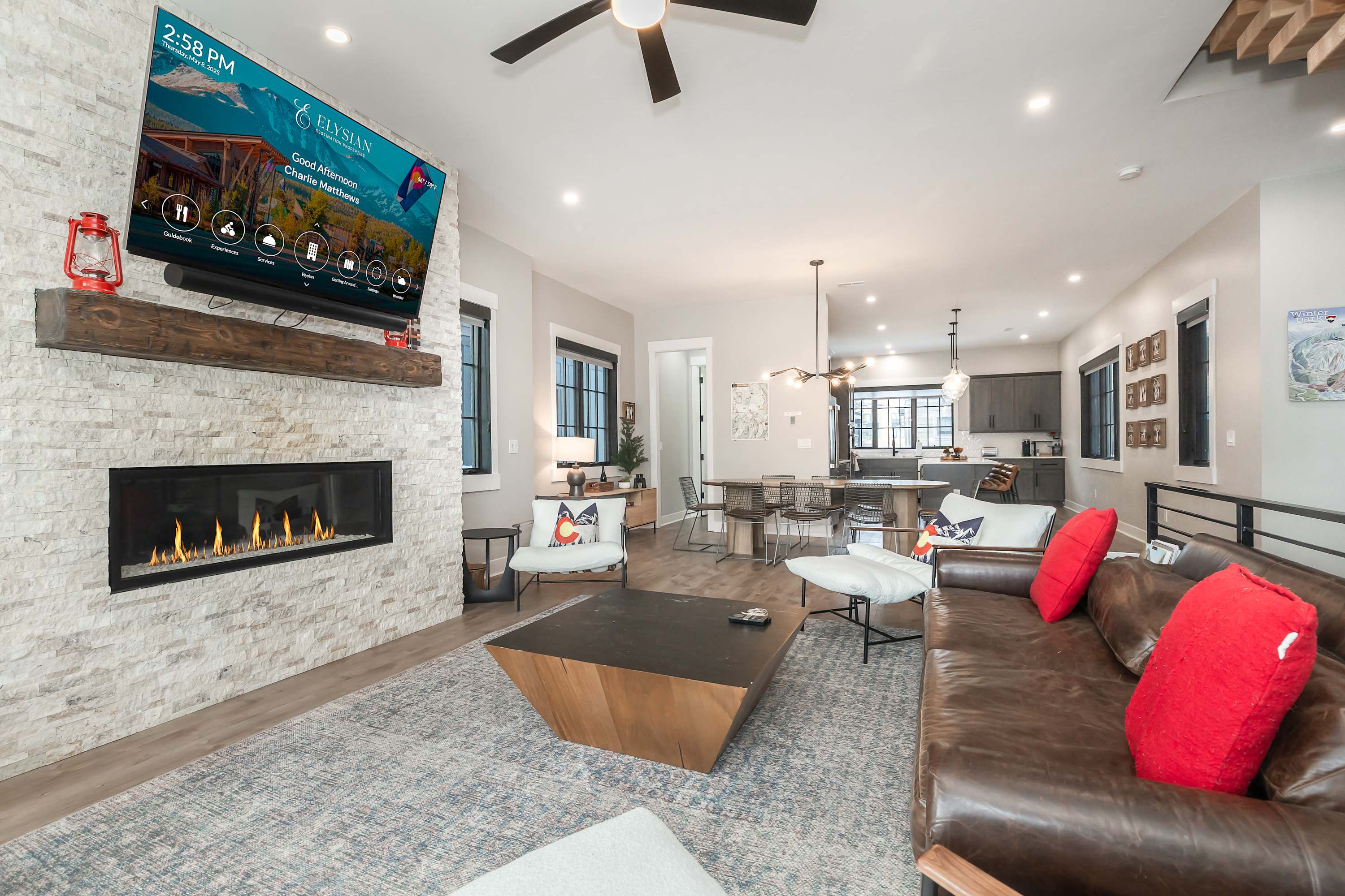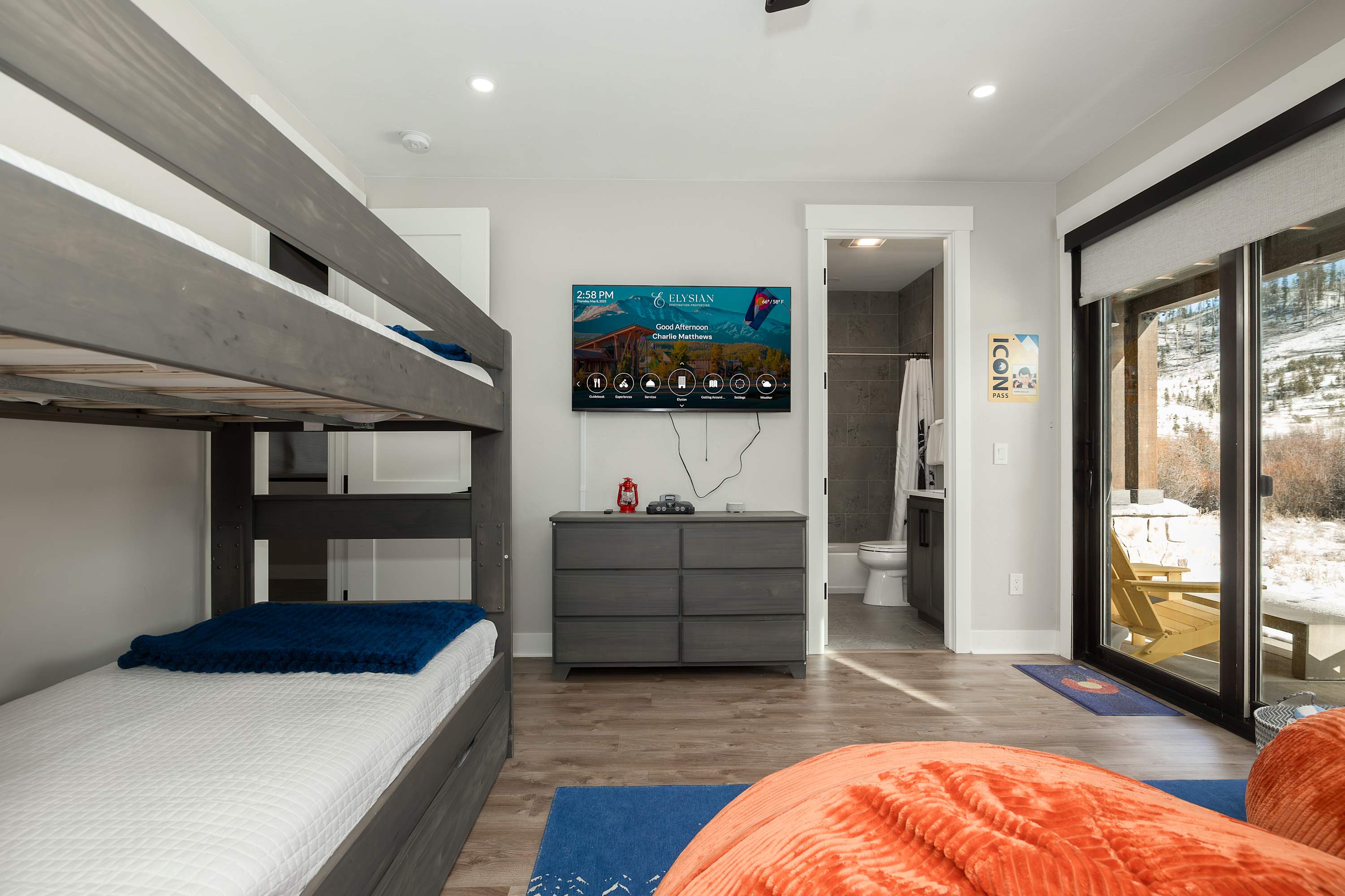 After a day on the mountain or trails, return to your riverside haven and unwind in true Elysian style. Store gear in the spacious garage, refresh in one of the spa-inspired bathrooms, then head to the rooftop deck to soak under the stars or relax in the sauna. Whether cooking together, gathering around the fire, or retreating to your private suite, every detail is designed to deliver elevated, effortless mountain living.