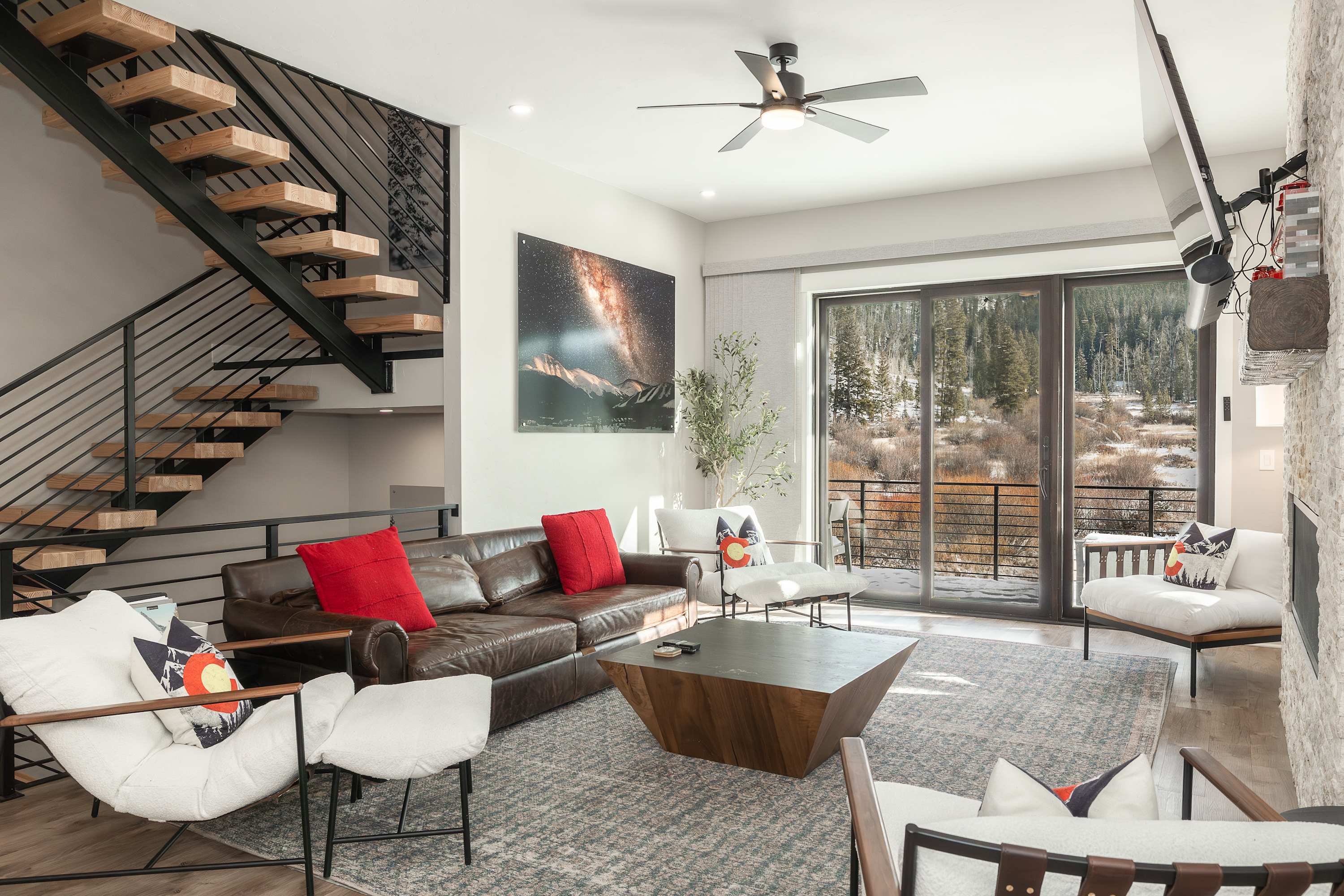 Set along the Fraser River in ROAM, Winter Park’s most sought-after new community; Starview Chalet pairs modern architecture with restorative natural surroundings. This 4-bedroom, 3.5-bath, ~2,700 sq ft single-family home features a rooftop wellness deck with a hot tub, sauna, lounge seating, and endless mountain and river views. Wide windows frame the outdoors, the sound of the river fills the home, and every vantage point invites guests into Colorado’s mountain light.