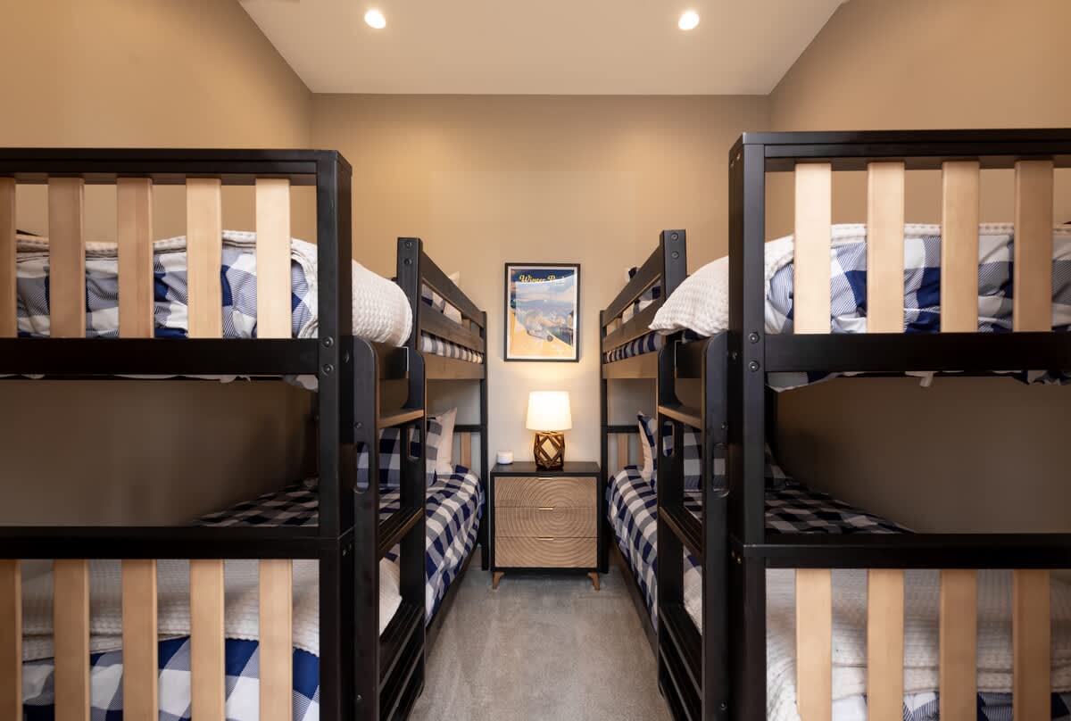 Tranquil Retreats: Two luxurious king bedrooms and a sleeping nook with twin bunk beds provide serene spaces for restful winter night
