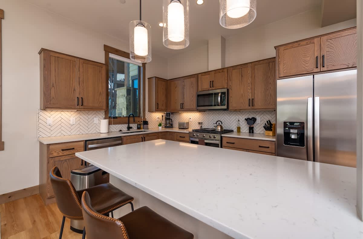 Gourmet Kitchen: The state-of-the-art kitchen features top-of-the-line appliances and everything needed for hearty winter meals.